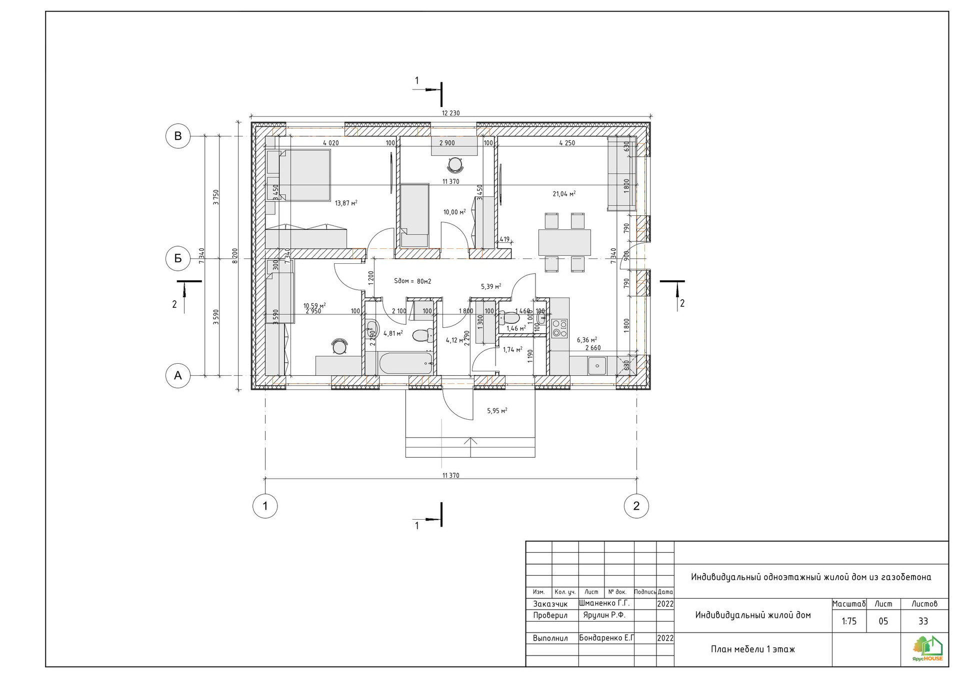 Общая площадь 80 м2