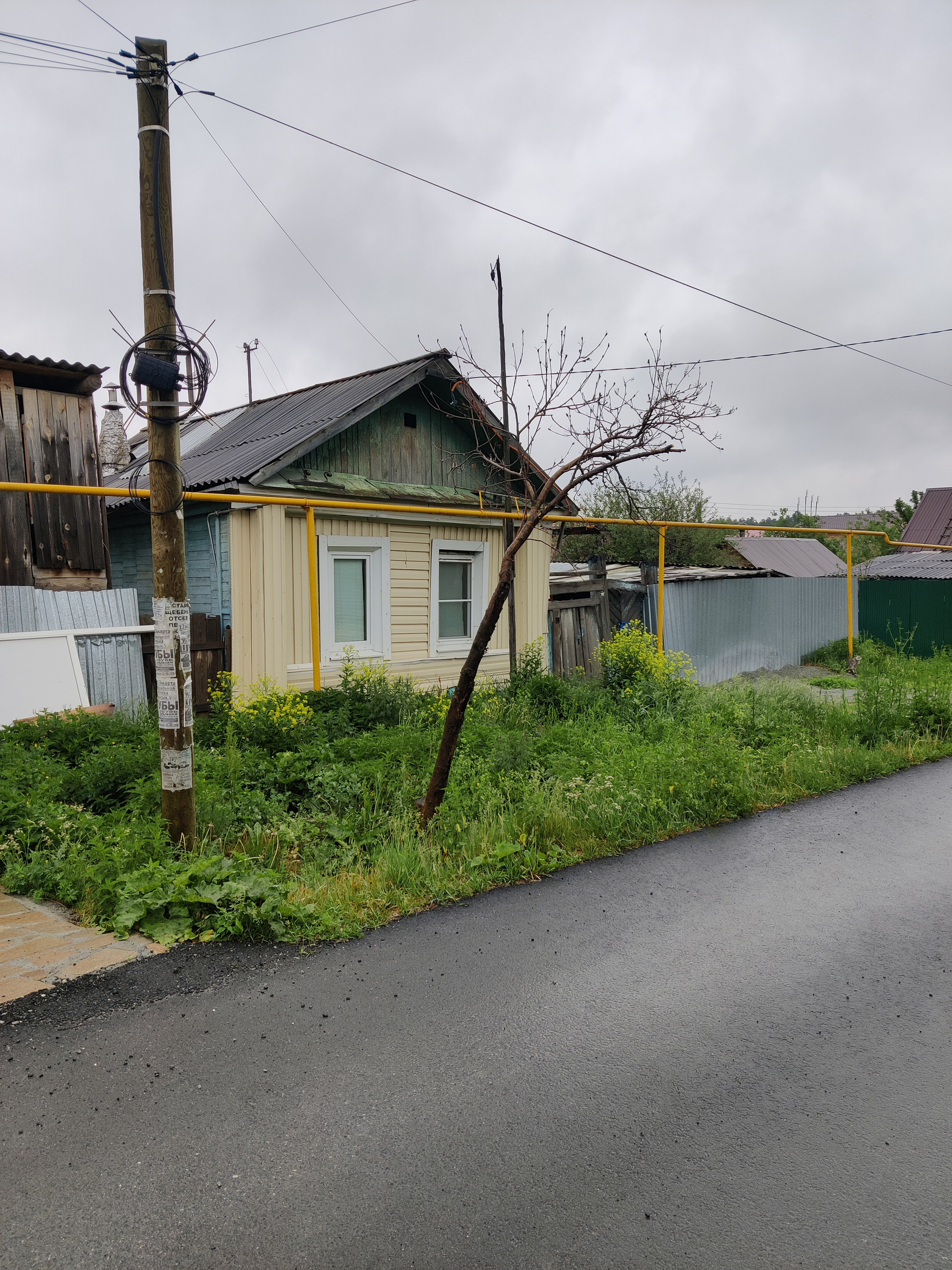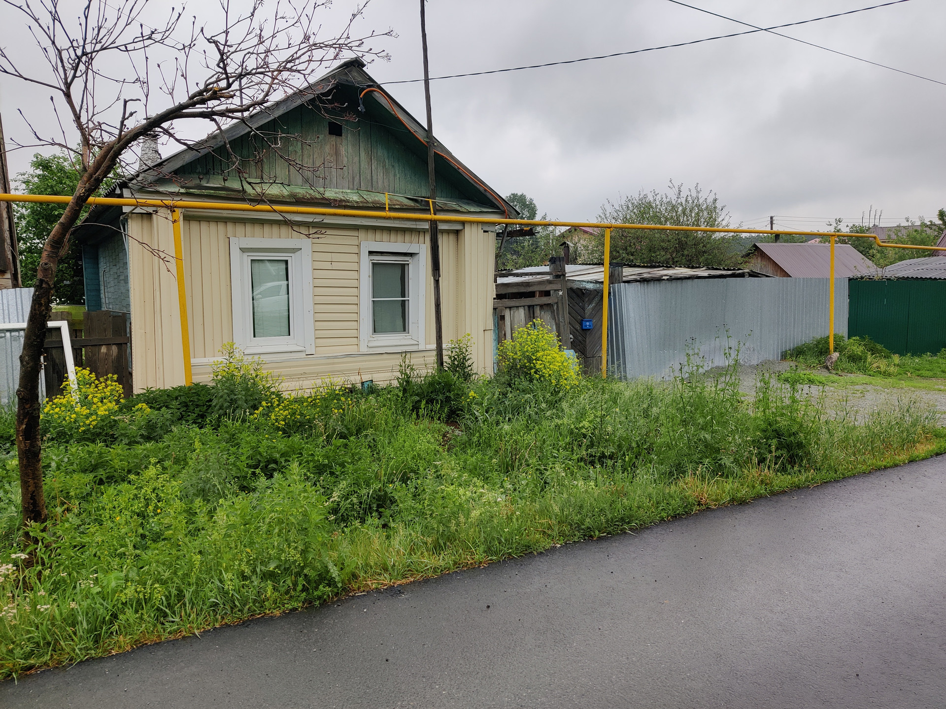 Небольшой домик, есть газ, котел, отопление газом, водоснабжение центральное, удобства на улице. Небольшая банька, очень теплая. Постройки/навес - во дворе, за домом постройка (курятник, козлятник, сеновал). На участке пару лет назад начали строить баню из блока. Со всех сторон участка забор. Соседи дружелюбные.