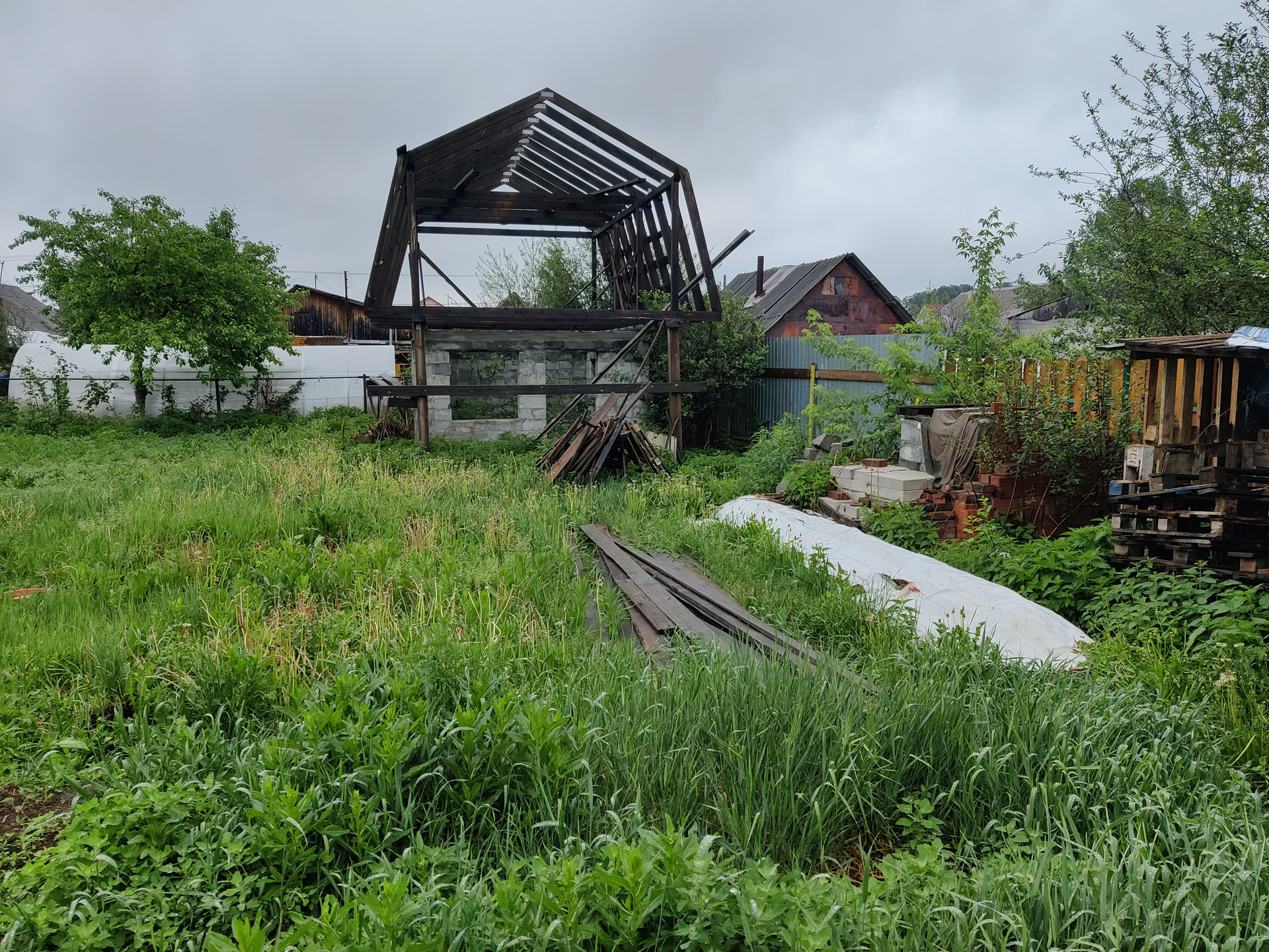 ГПЗУ есть, строительство разрешено, шахт нет, прописанных нет! Размер участка 18*34 метров