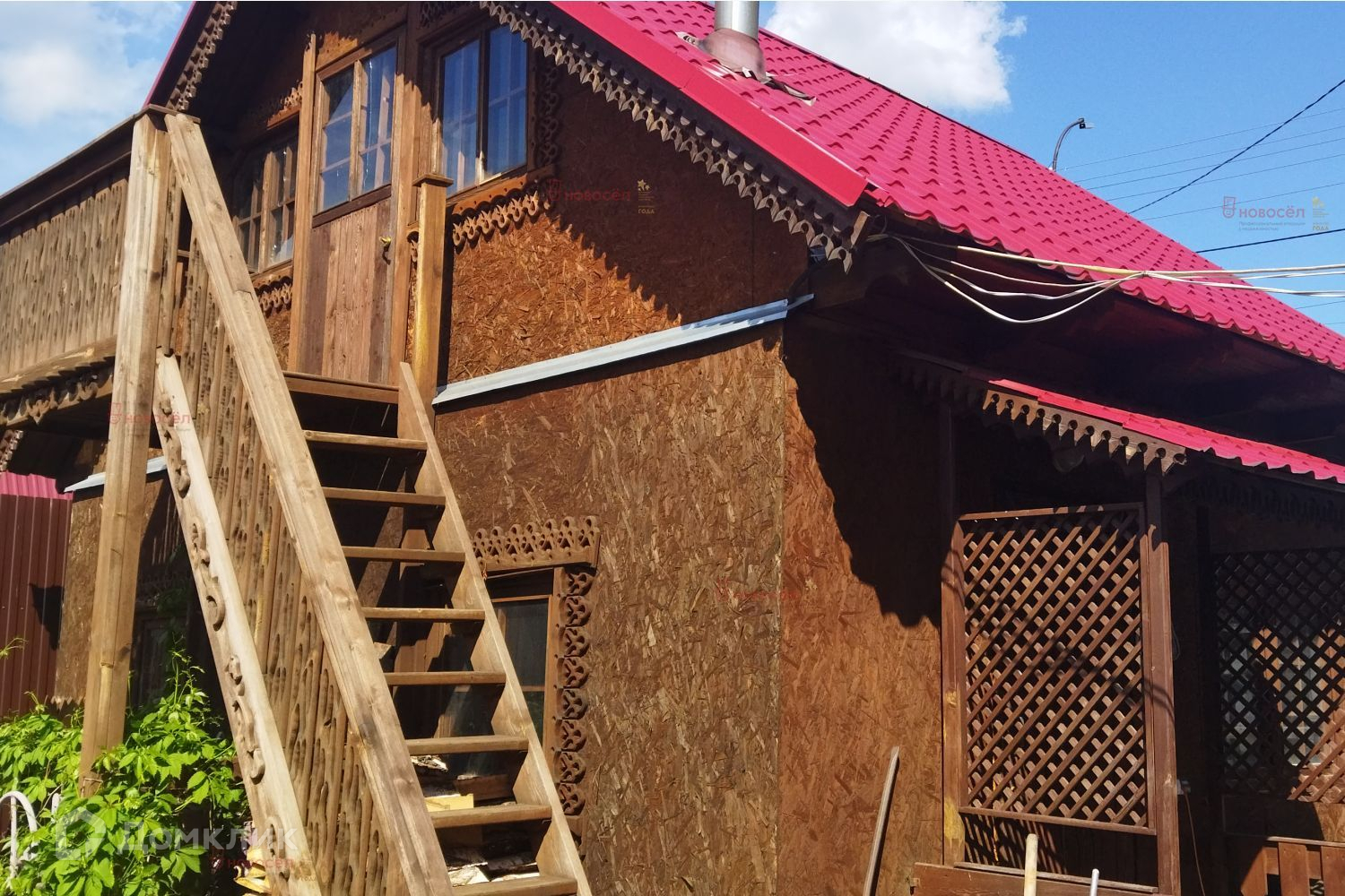 Дом 2005 года постройки, два этажа, на первом расположен камин. В доме газовое отопление, центральное водоснабжение, санузел в доме (выгребная яма), электричество, видеонаблюдение. В доме баня, три комнаты, ванная, кухня и гостиная и терраса.
