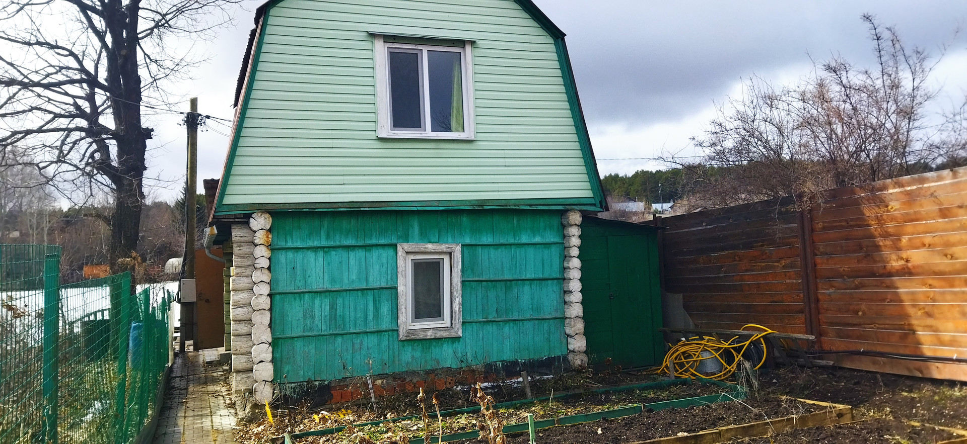 Участок разработан с многолетними насаждениями: малина, жимолость, вишня, клубника. Парковка на 4 машины.