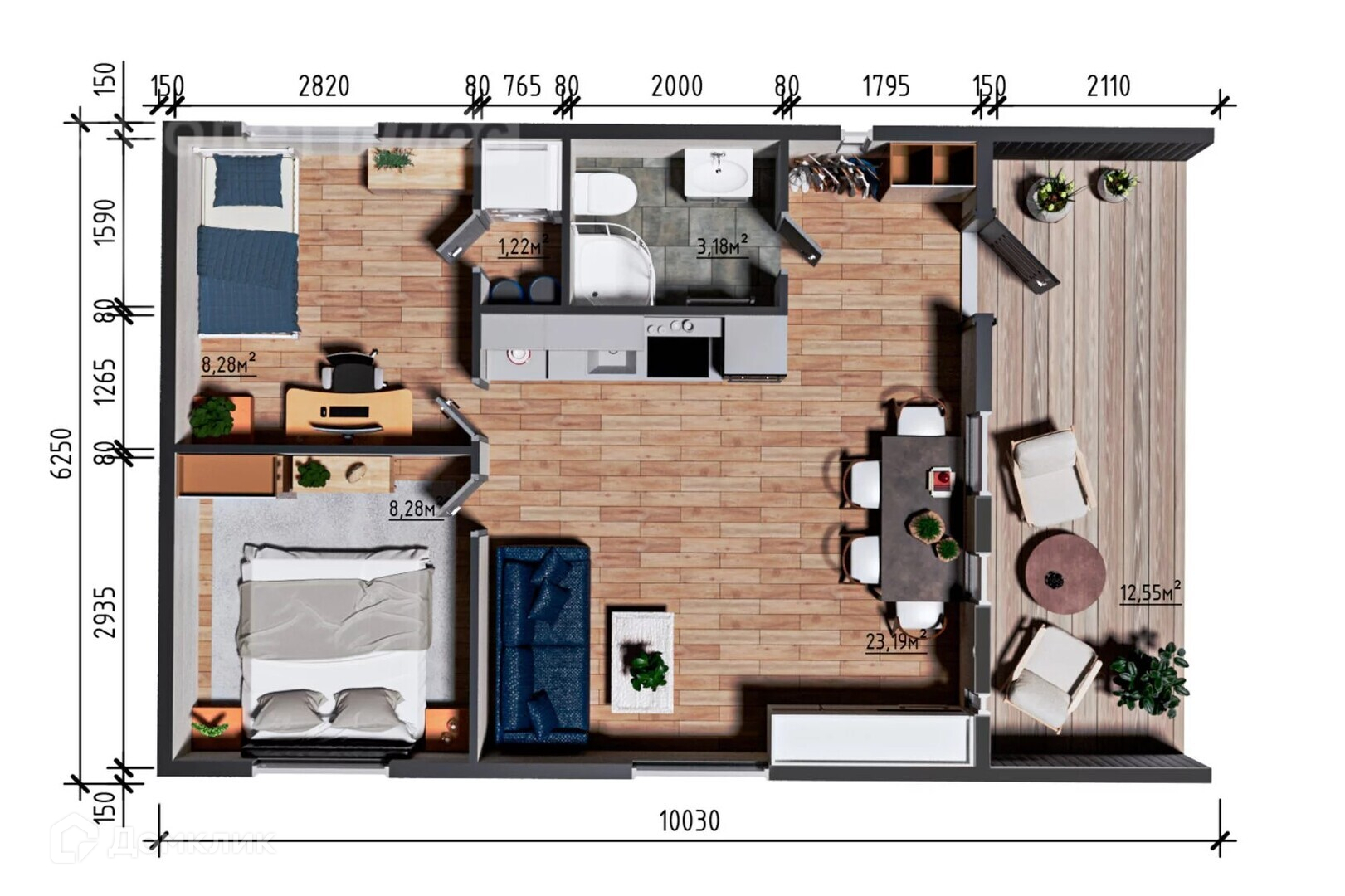 3\. 2 спальни