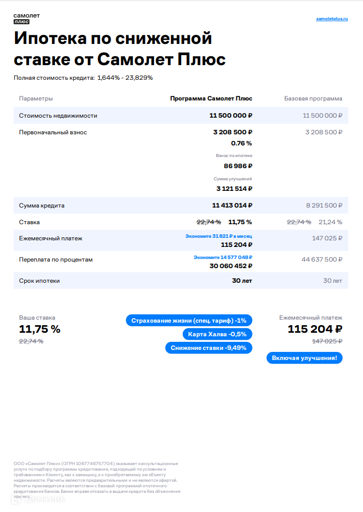 Расчет на ипотечном калькуляторе ONREALT.RU приблизительный, он не учитывает возможных дополнительных платежей. Точный расчет, условия ипотечных программ, срок, процентную ставку, график выплат и прочие особенности предоставляет банк при заключении договора об ипотечном кредитовании.