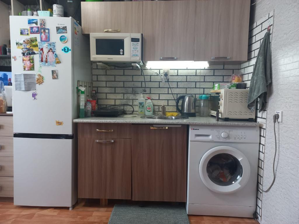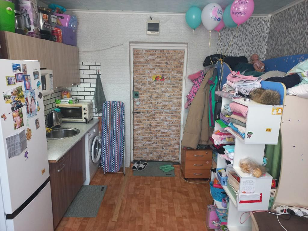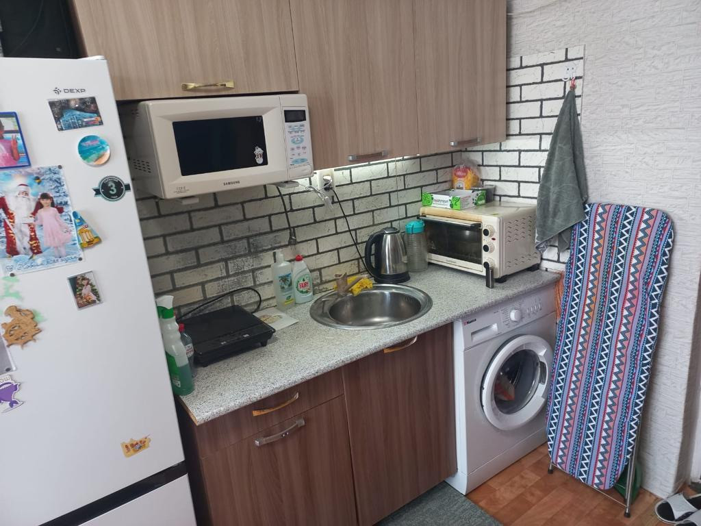 Продаётся  тёплая, светлая комната с ремонтом, пластиковое окно,вода заведена в комнату что не во всех комнатах это сделано. Также есть общая кухня ну там только стоят стиральные машинки. Туалет общий на 3 семьи. Душ тоже с ремонтом также на 3 семьи. В комнате остается вся мебель диван, шкаф, кухонный гарнитур, кровать детская,обувница, шкаф в коридоре, тумбочка, стулья,стол. Секция сделана на 3 комнаты, соседи хорошие все семейные с детьми.