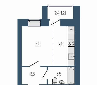 Жилая площадь 8.6 м2
