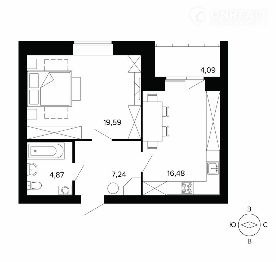 Общая площадь 52.3 м2