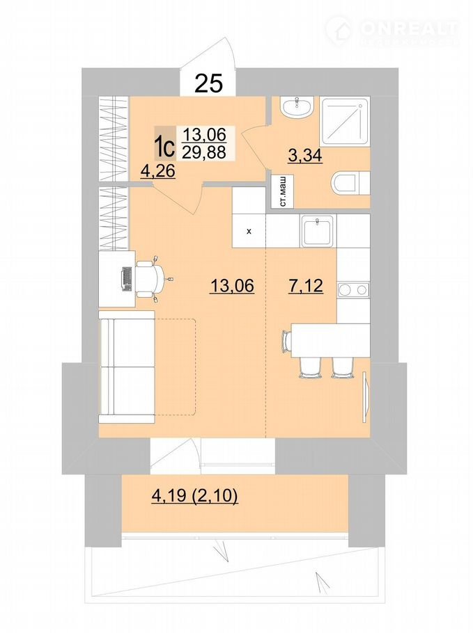 Общая площадь 29.9 м2