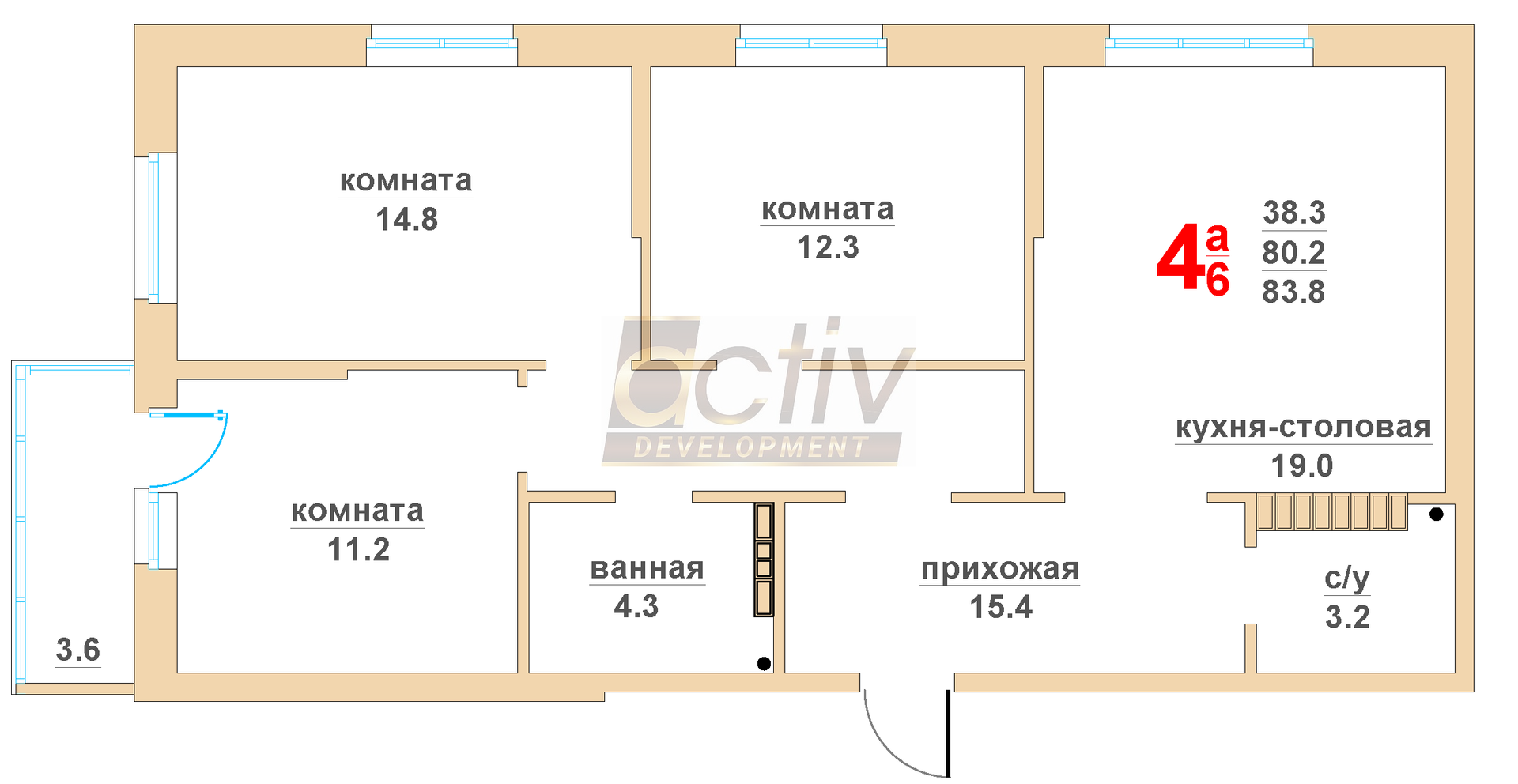 Общая площадь 83.8 м2