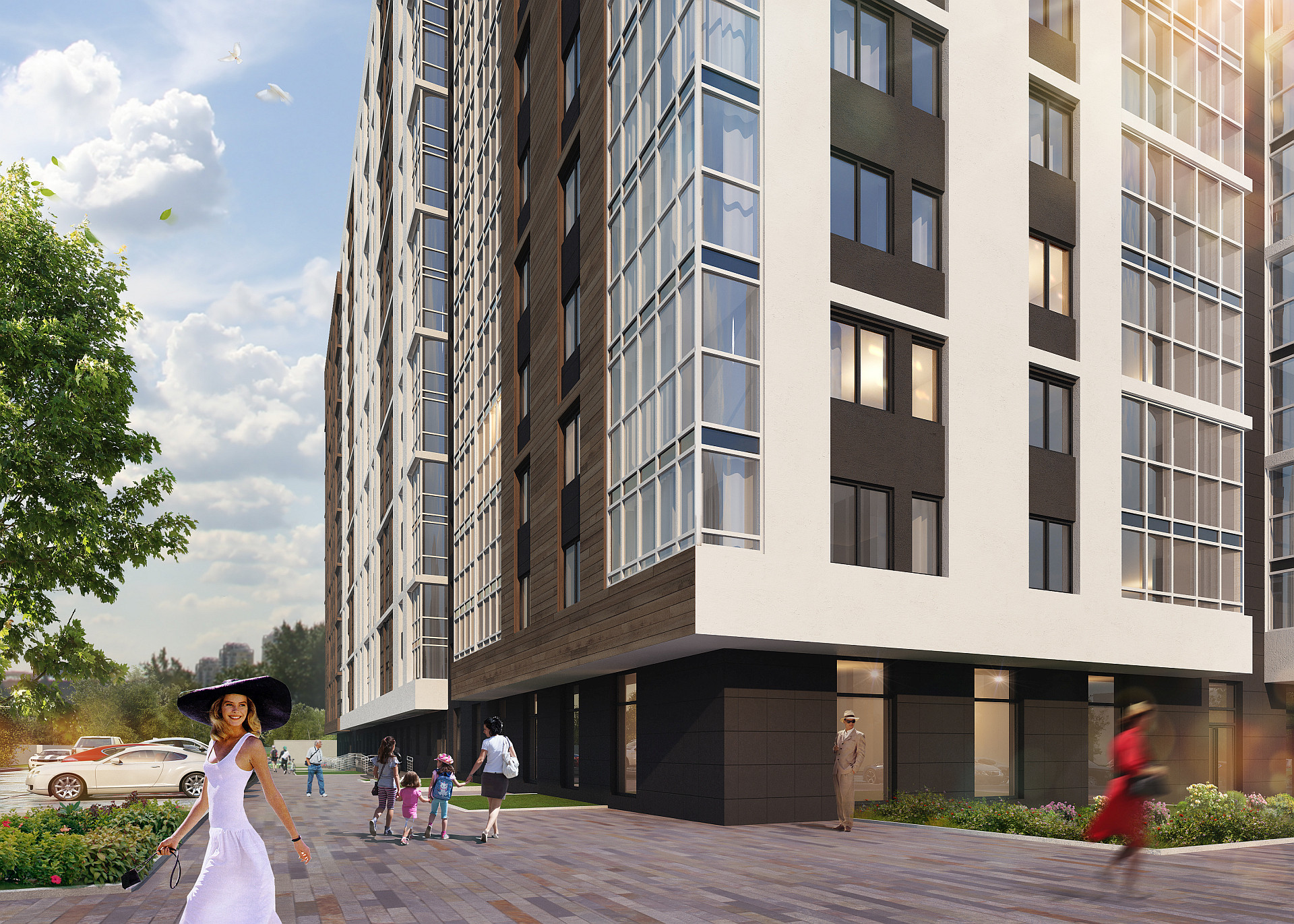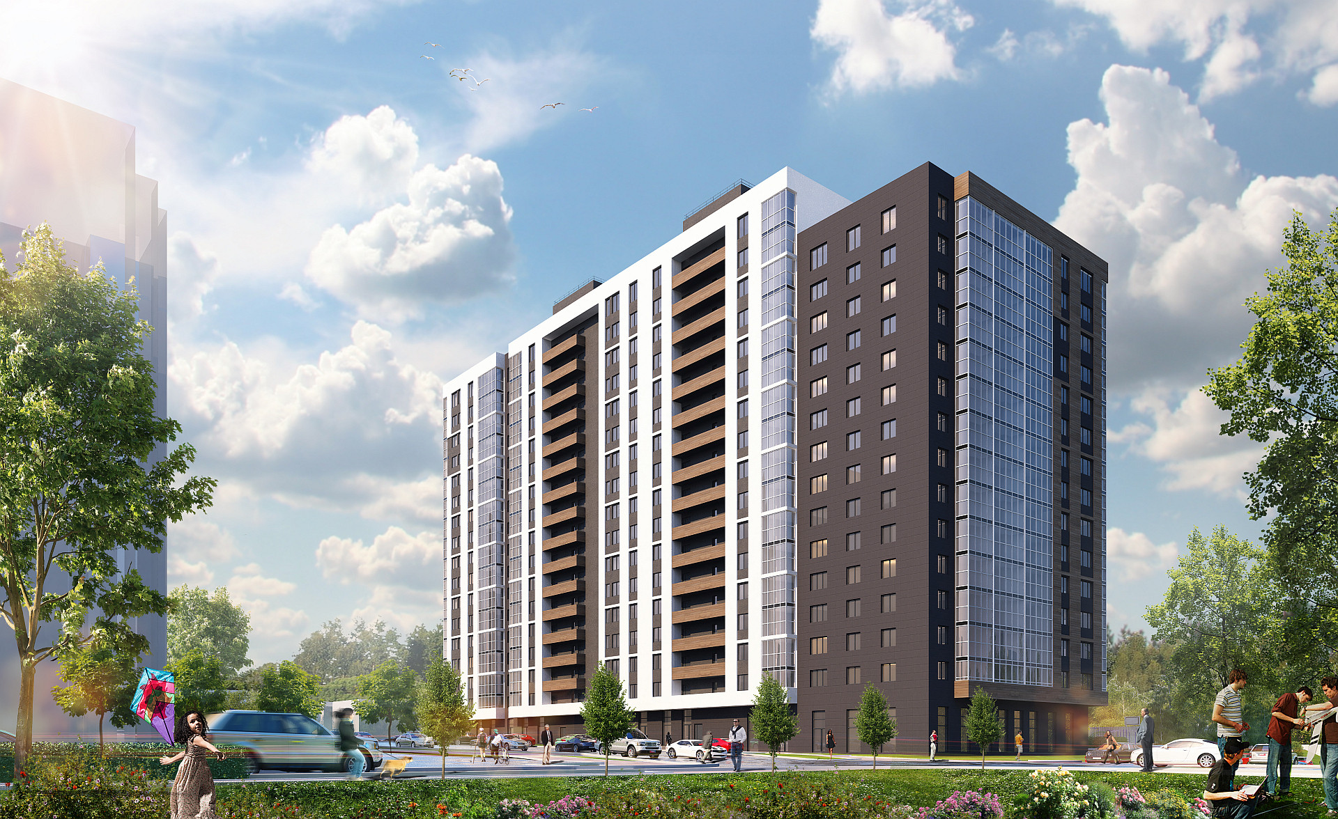 детские сады, школы, детские центры развития, поликлиника, кафе, магазины, остановки общественного транспорта, парк.