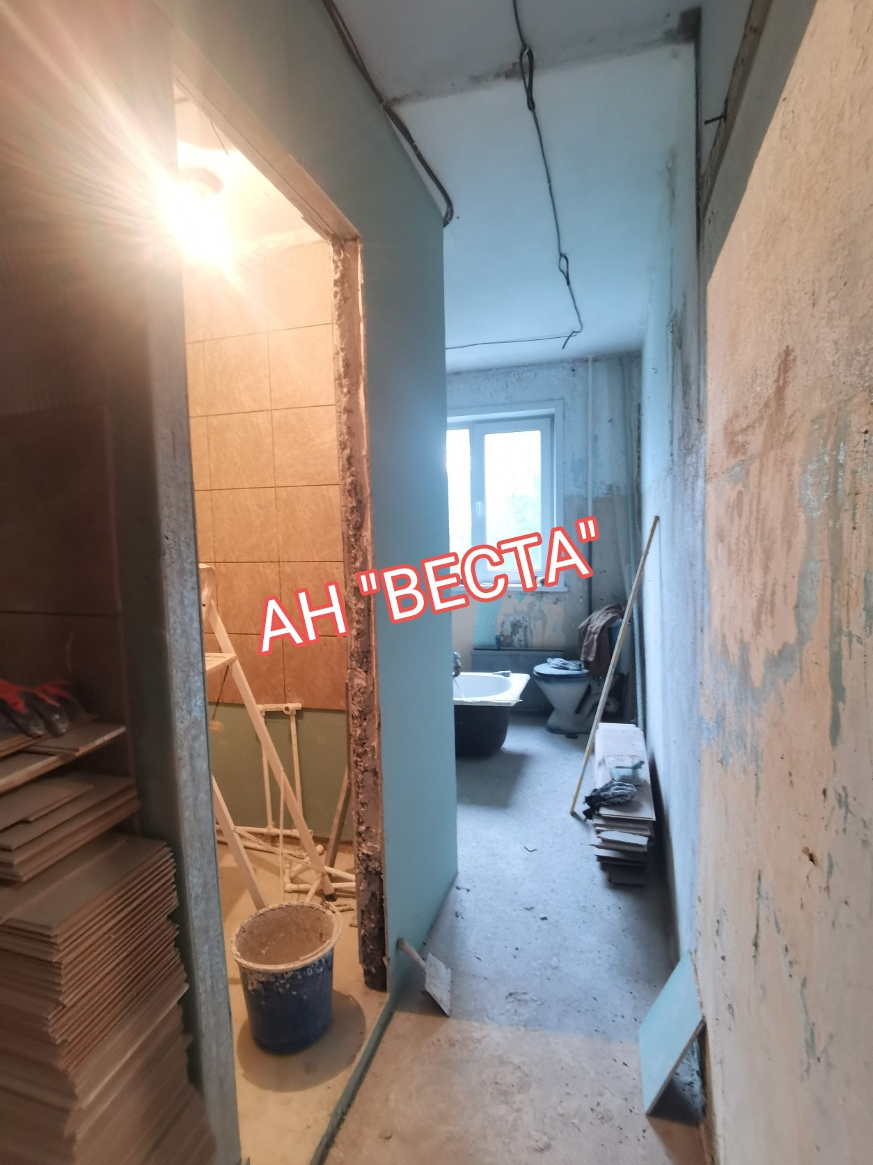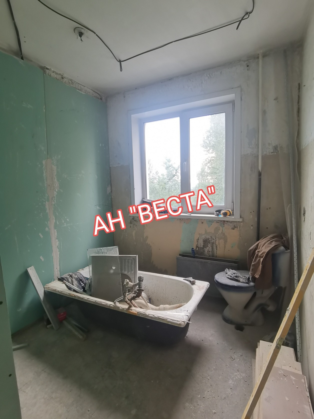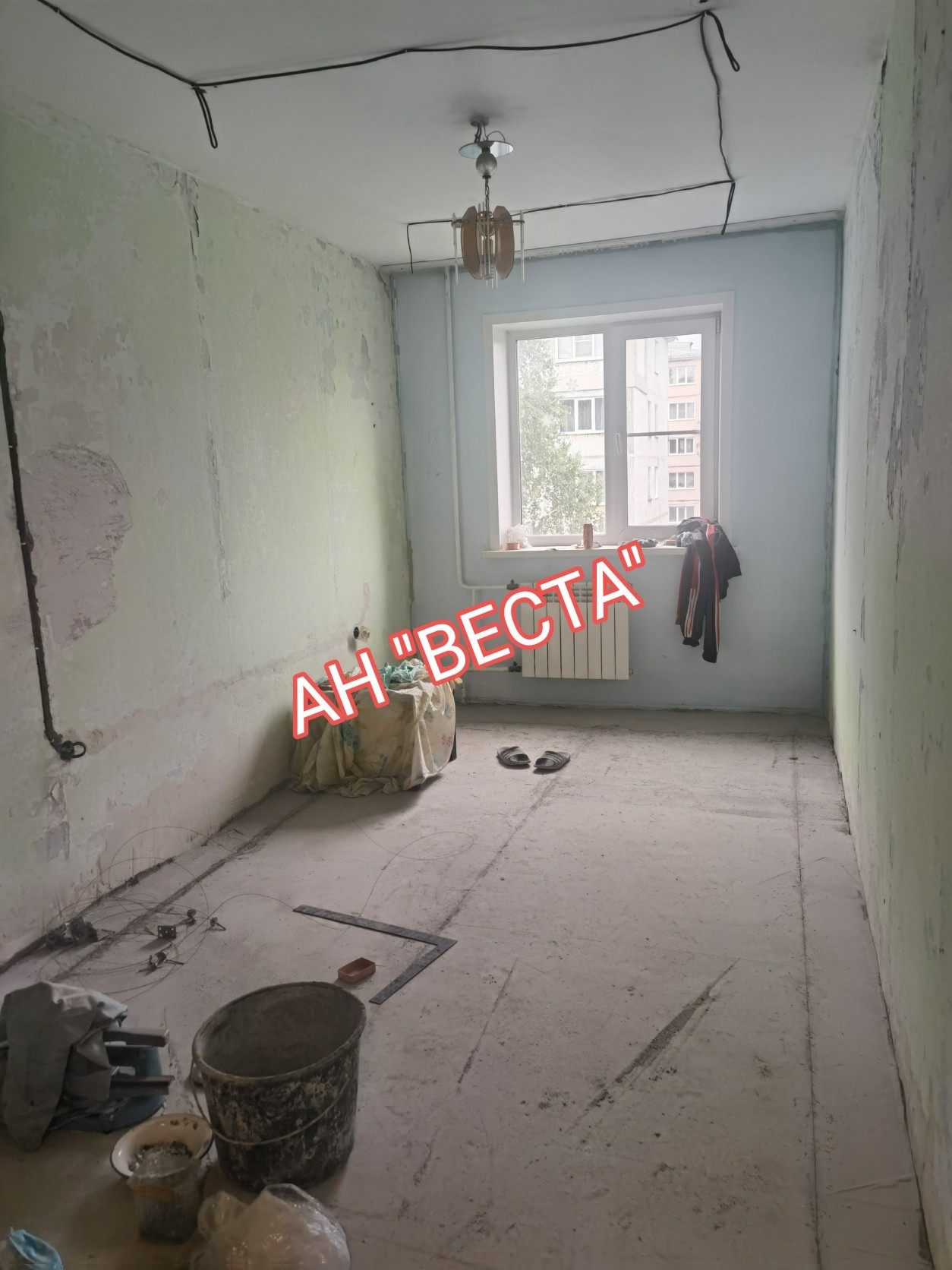 Квартира в стадии ремонта. Окна пластиковые, балкон остеклен деревом. Полы деревянные убраны, пол выровнен и залит. Ламинат в наличии, нужно стелить. Стены подготовлены к поклейке обоев. Заменена полностью электропроводка. Потолки подготовлены к натяжным полотнам, выведена электропроводка для точечного освещения.