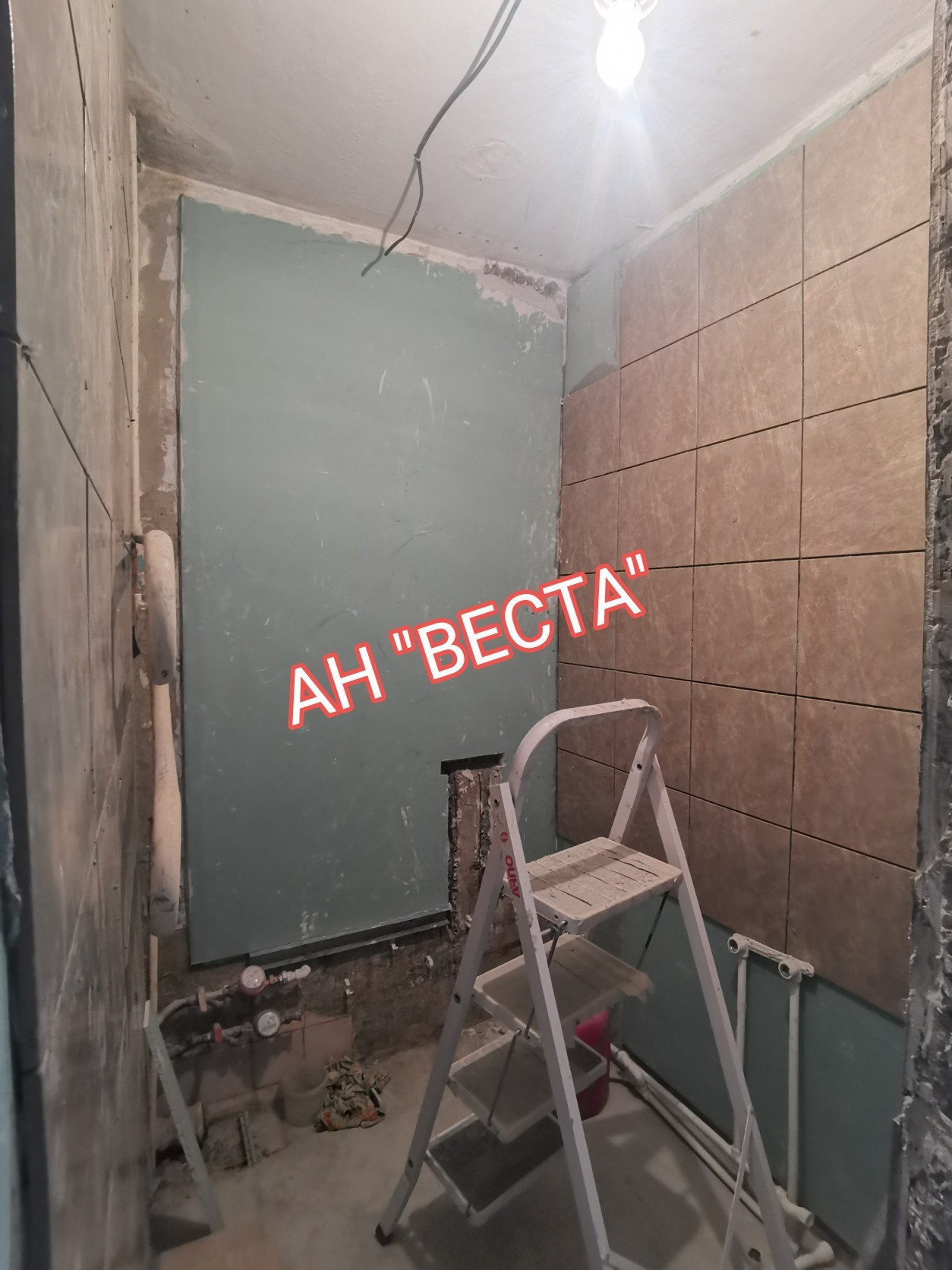 Санузел оформлен кафелем частично, плитка так же в наличии есть.