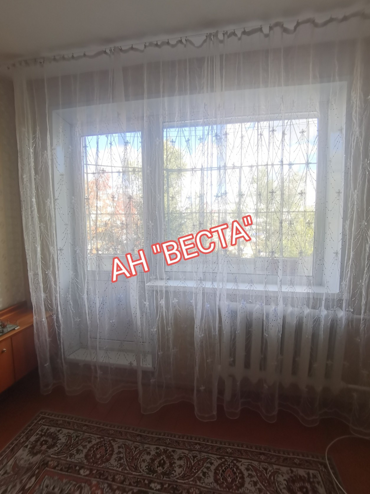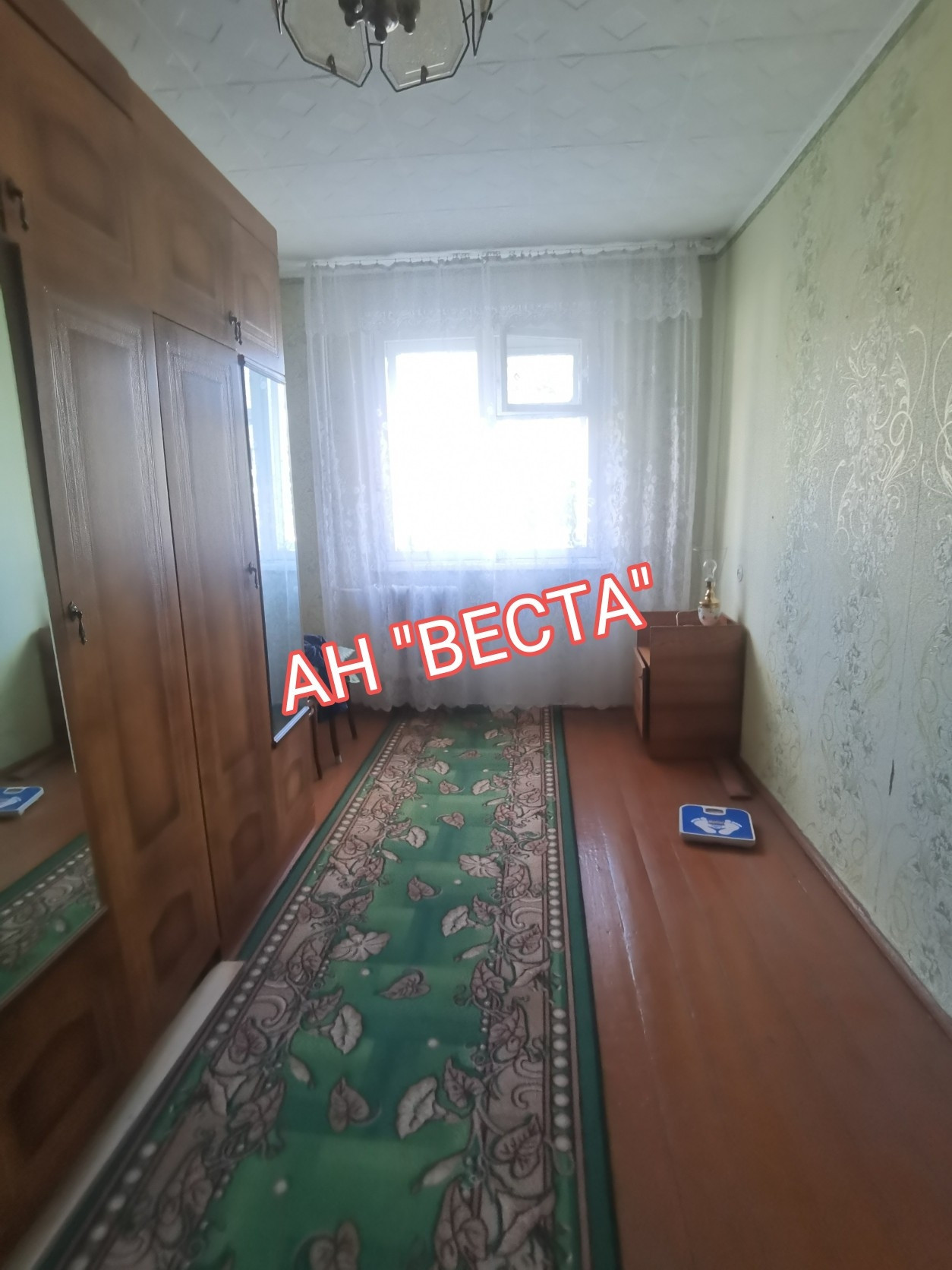 Окна ПВХ в зале, остальные окна в спальне и кухне деревянные. Балкон решетки.