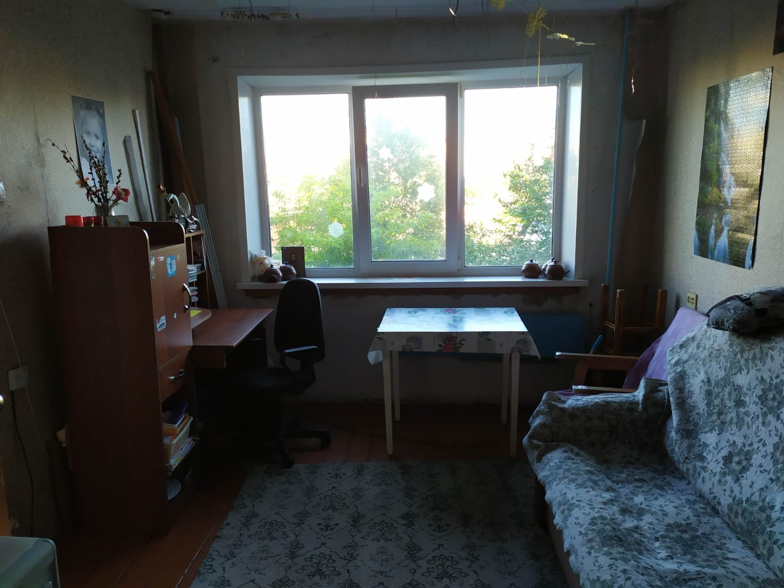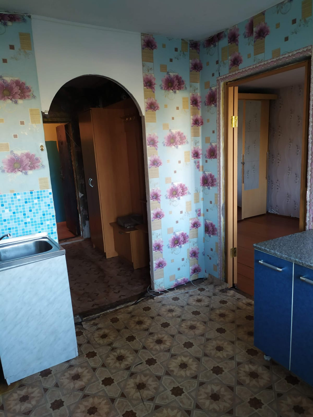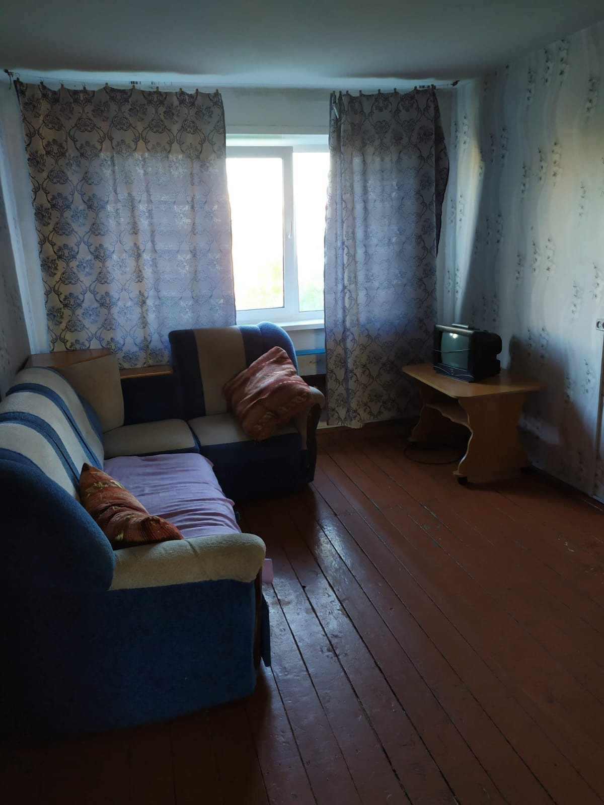 Стеклопакеты, балкон ПВХ, потолок побелка, на полу линолеум, санузел раздельный.