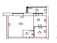 Жилая площадь 19.6 м2