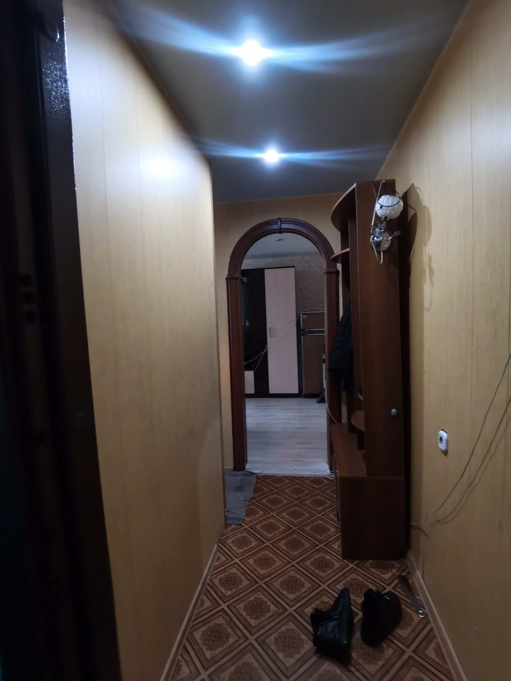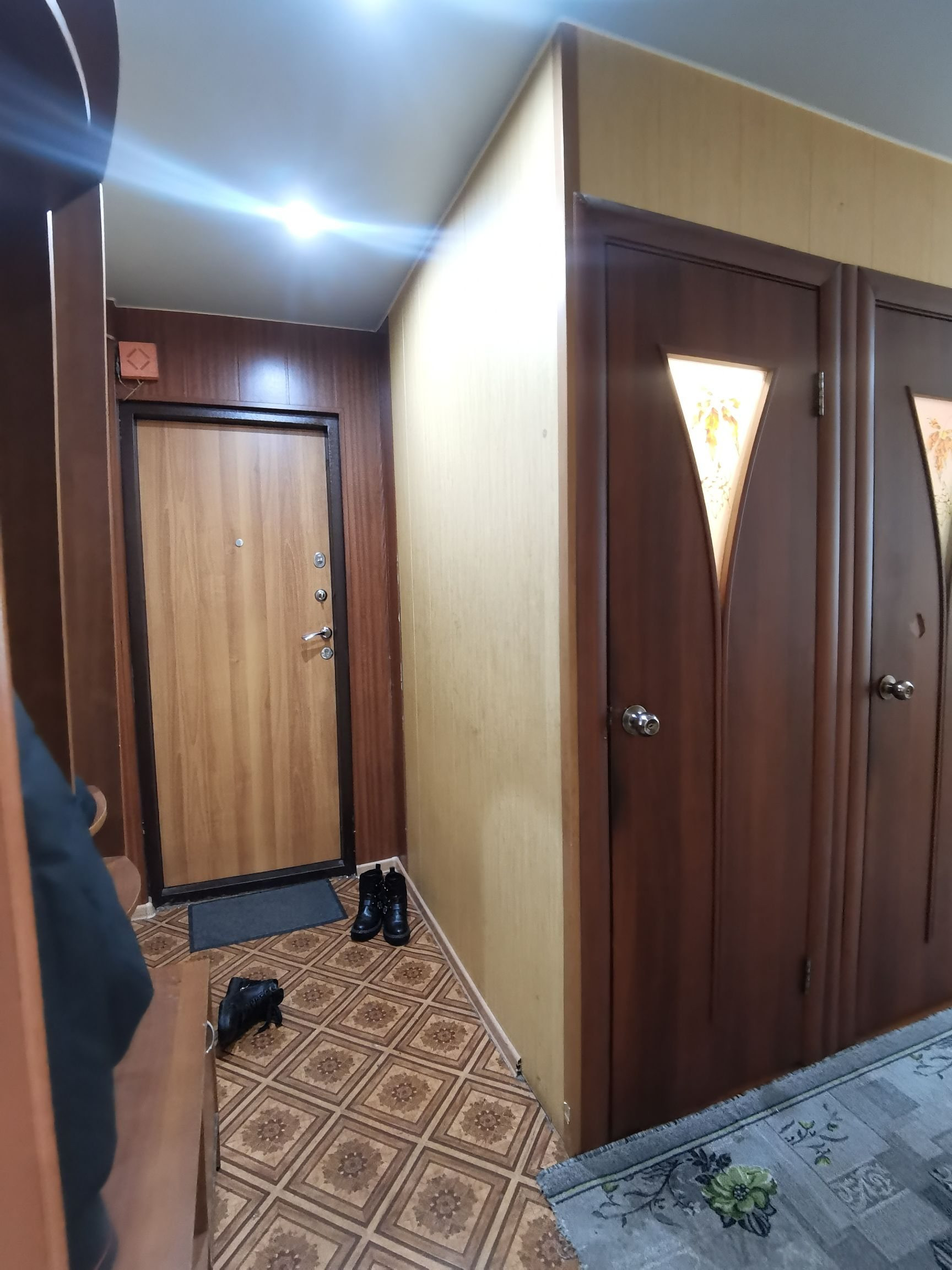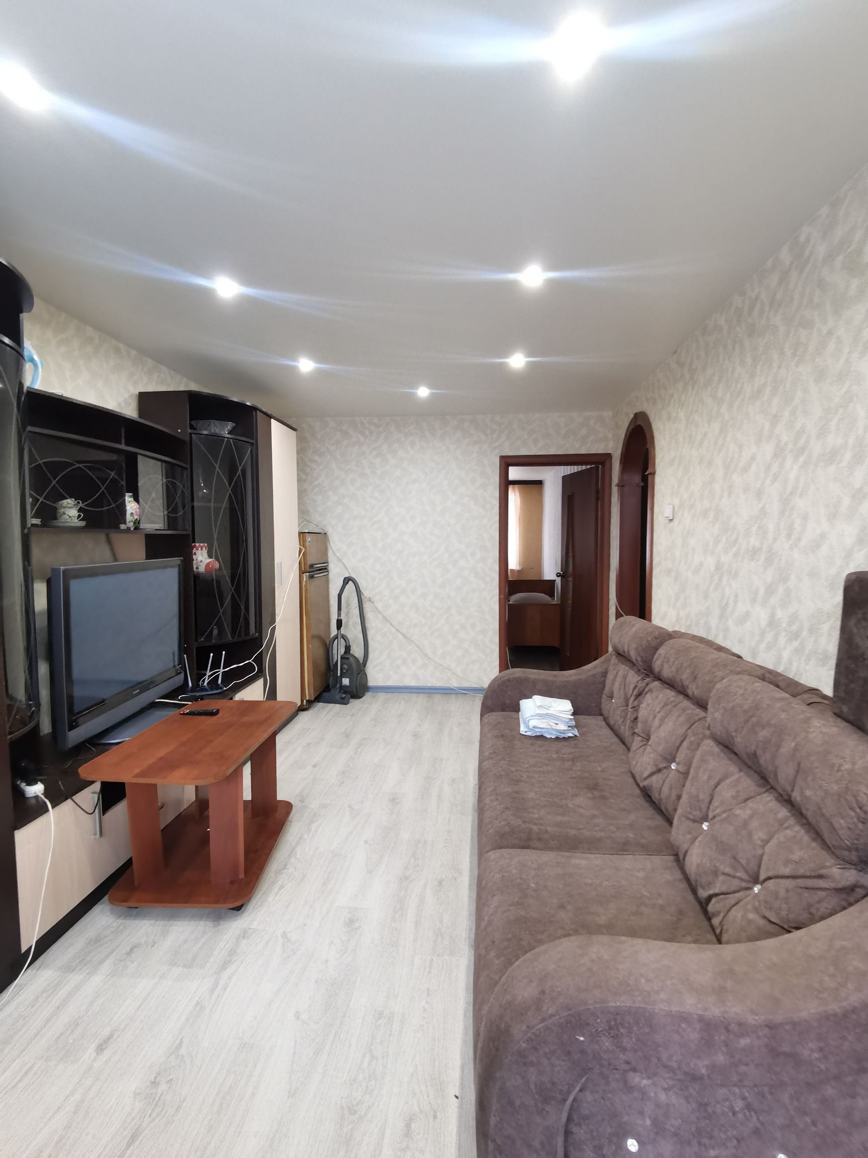 ⚡  Двери входные евро, межкомнатные двери современные. Стены оклеены обоями, потолки натяжные с точечными светильниками.