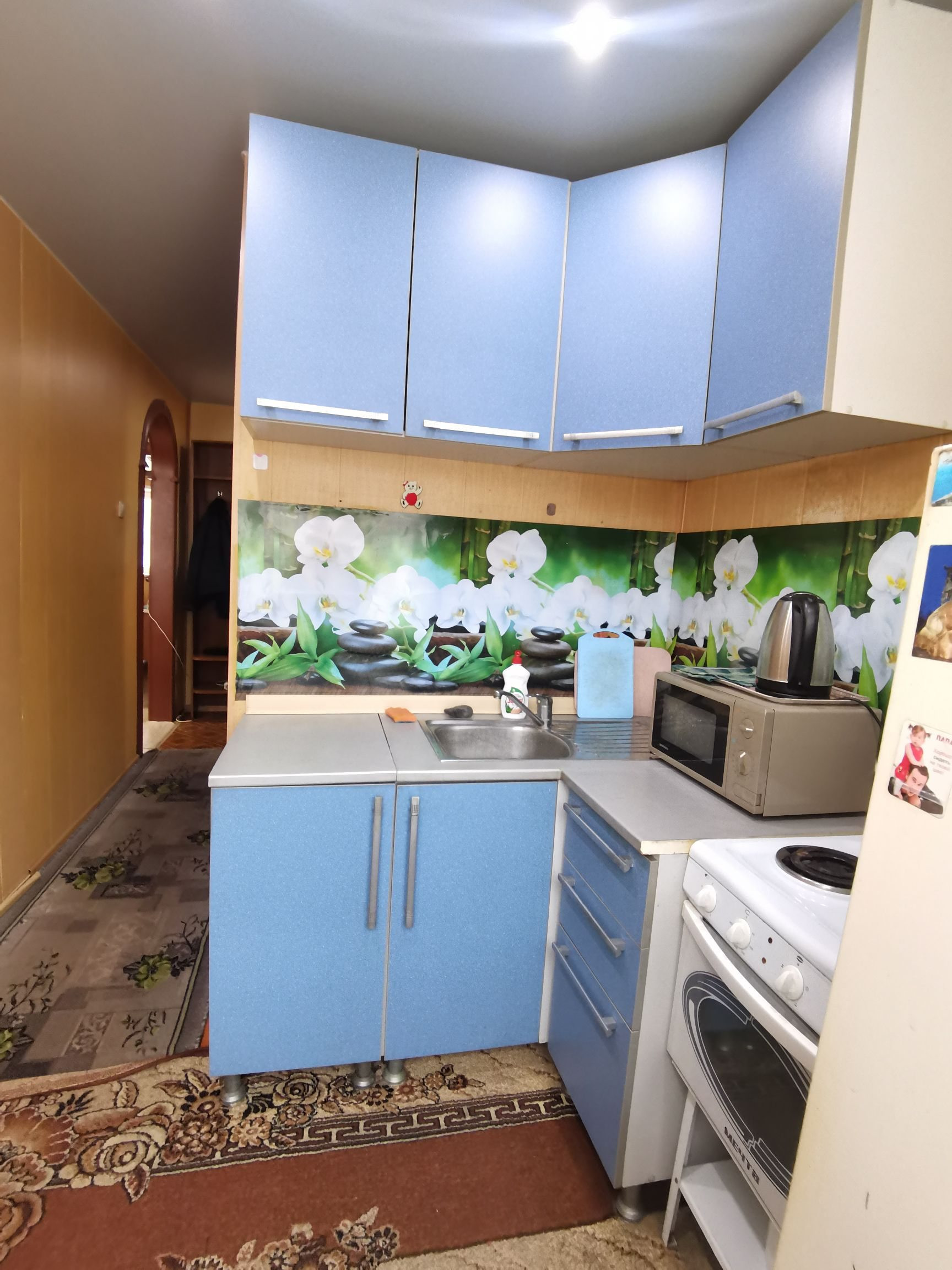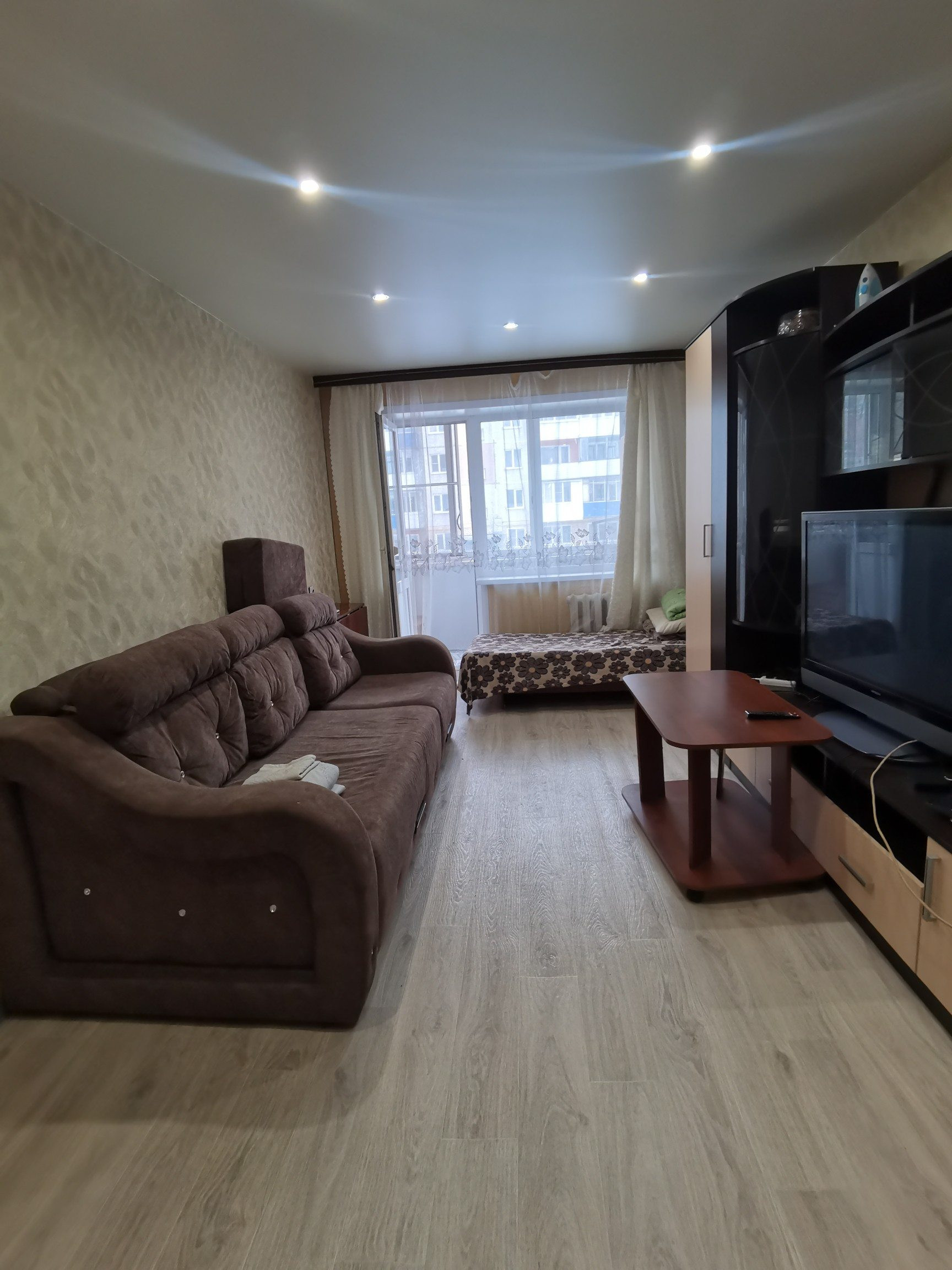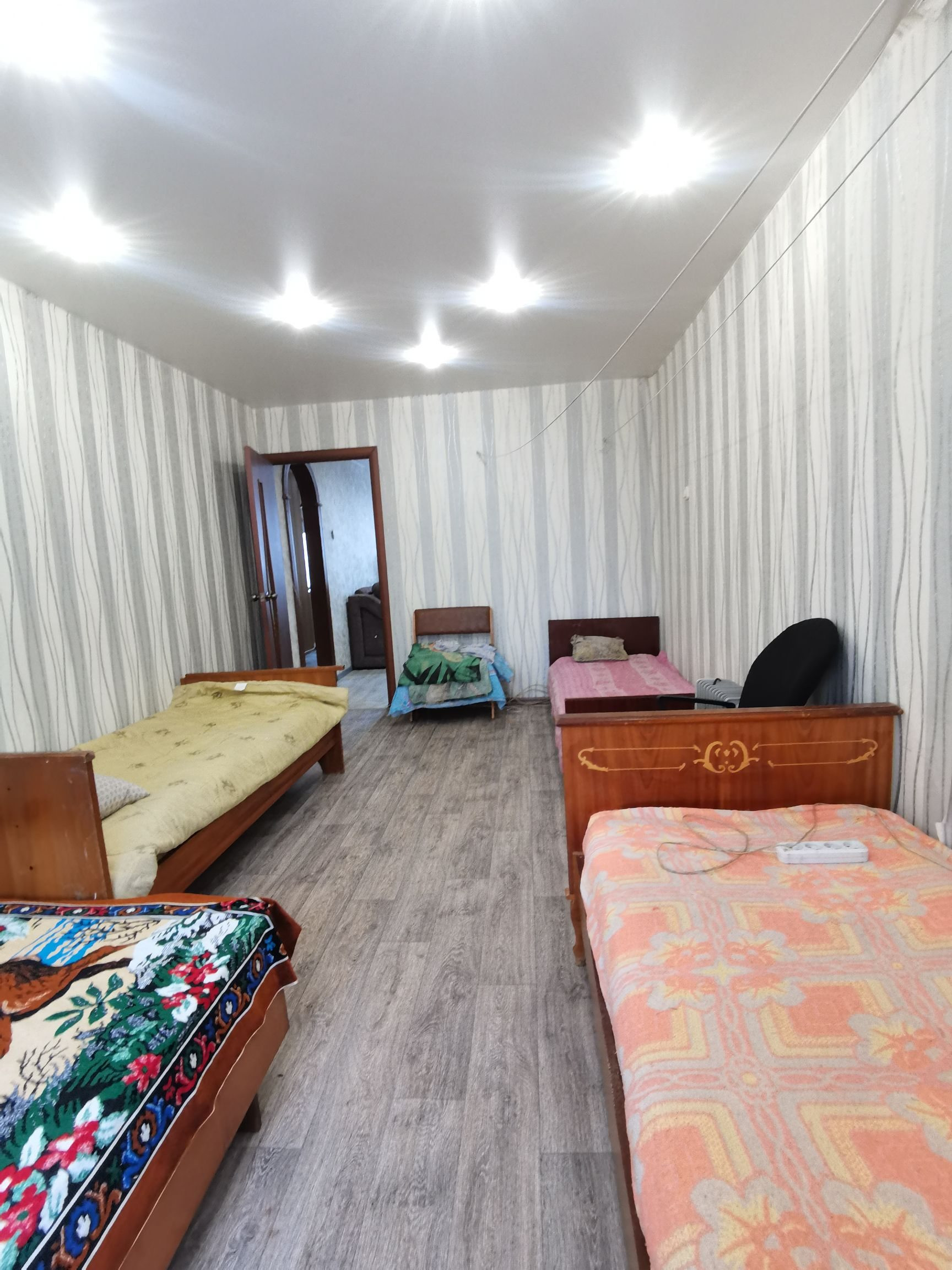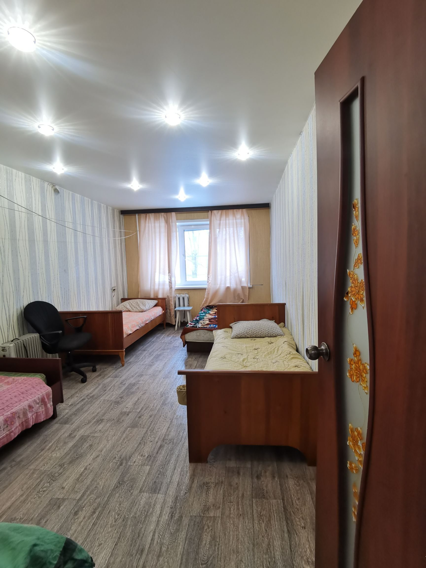 ⚡  Двери входные евро, межкомнатные двери современные. Стены оклеены обоями, потолки натяжные с точечными светильниками.