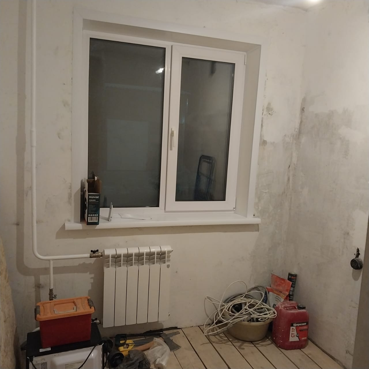 в квартире начат ремонт. окна заменили на ПВХ, пол перестилили, санузел после капитального ремонта.