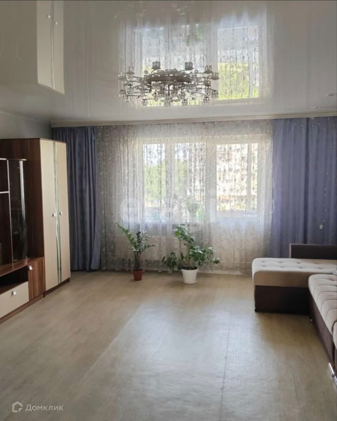 Остается – Кухонный гарнитур со встроенной варочной панелью. Люстры, гардины.