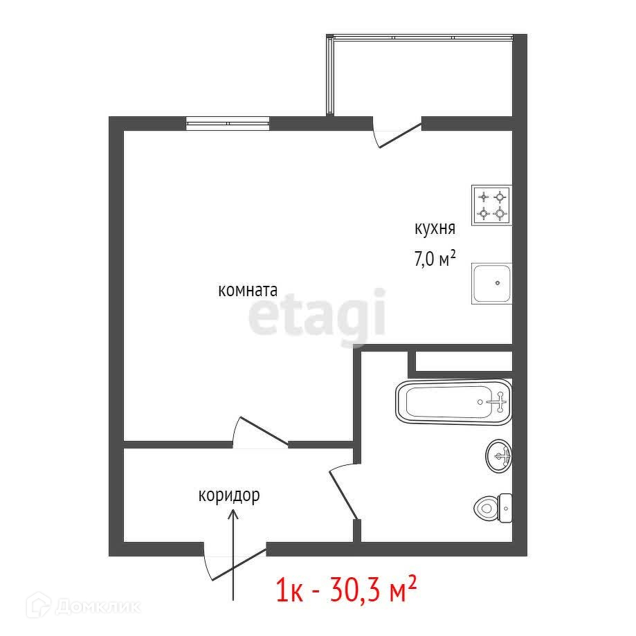 Общая площадь 30.3 м2