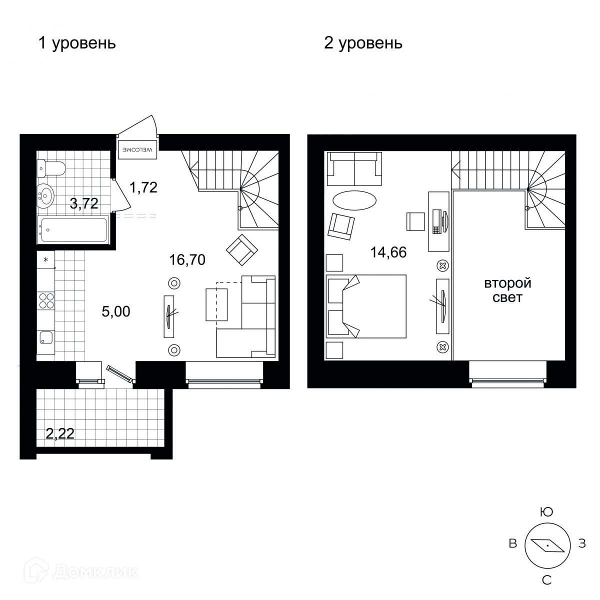 Евродвухкомнатная двухуровневая квартира от Застройщика в кирпичном 4-хэтажном доме.