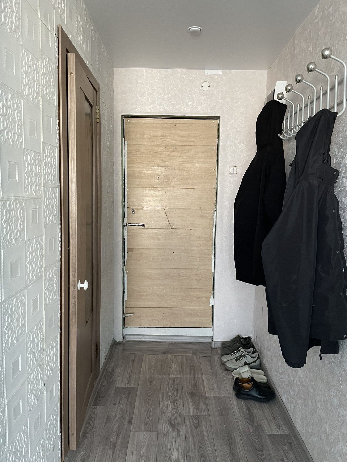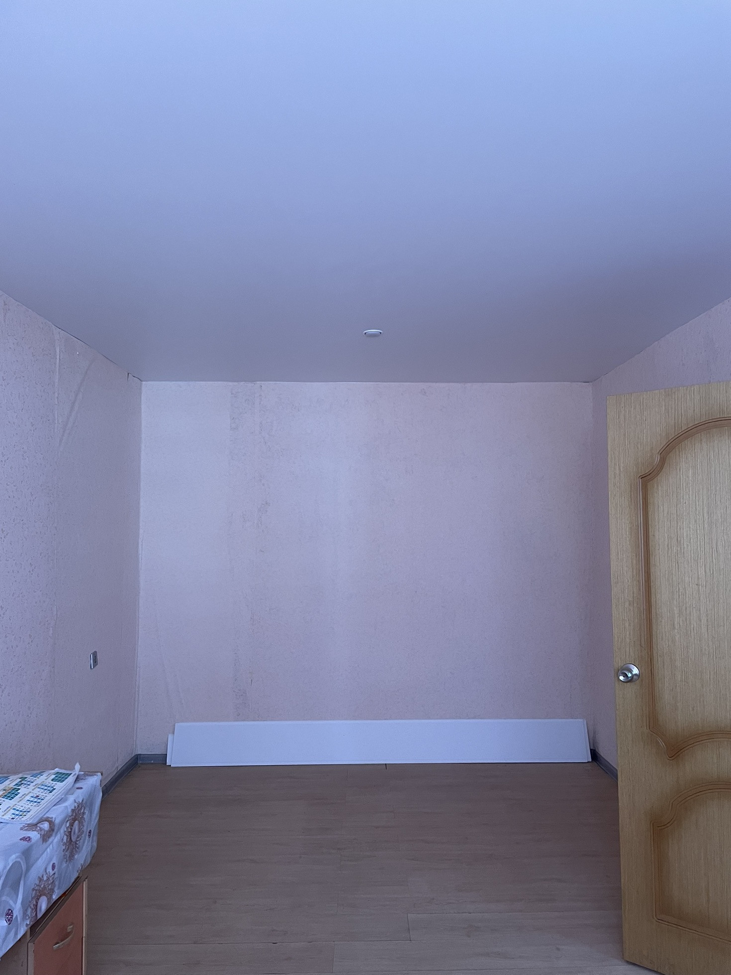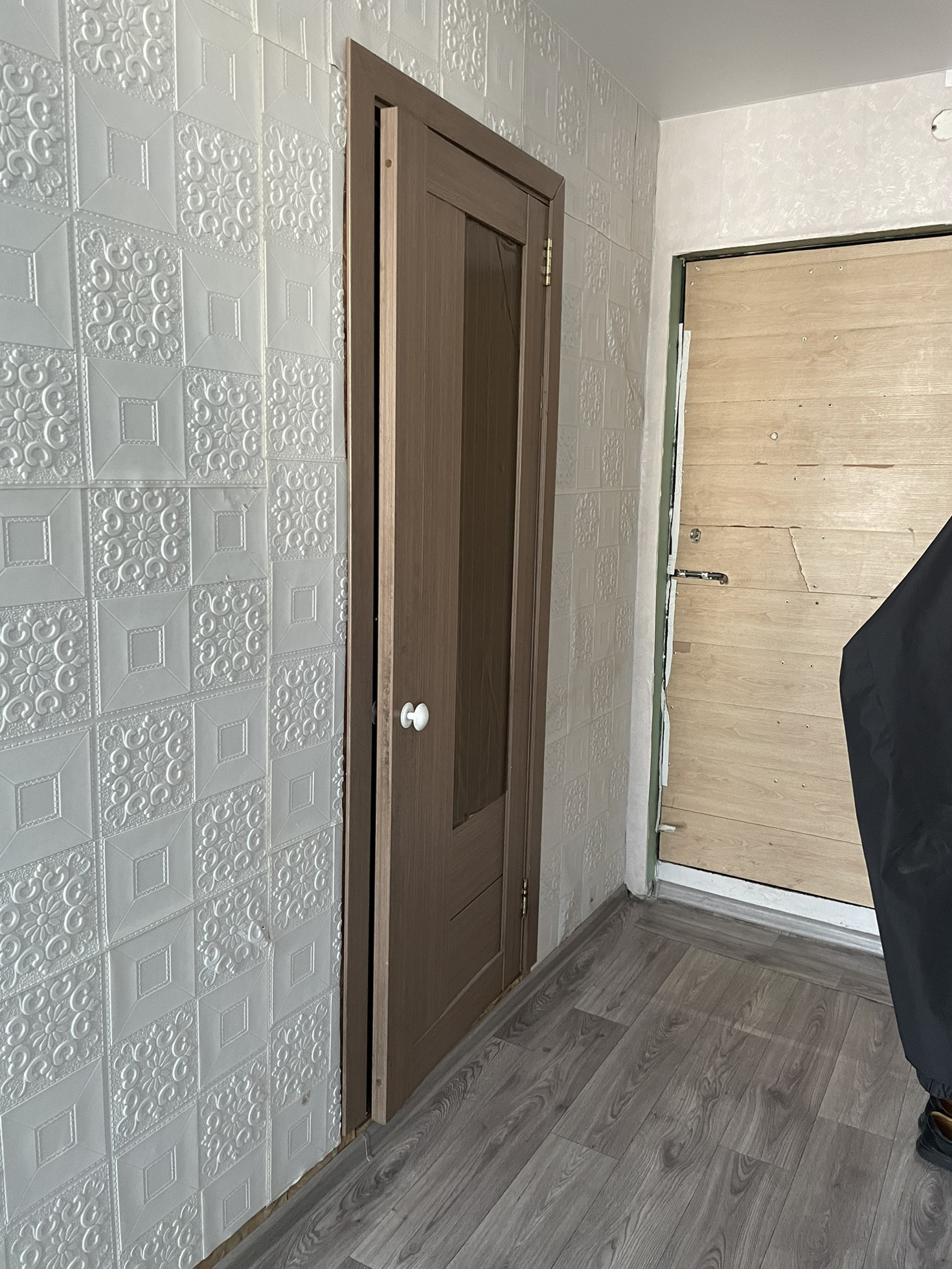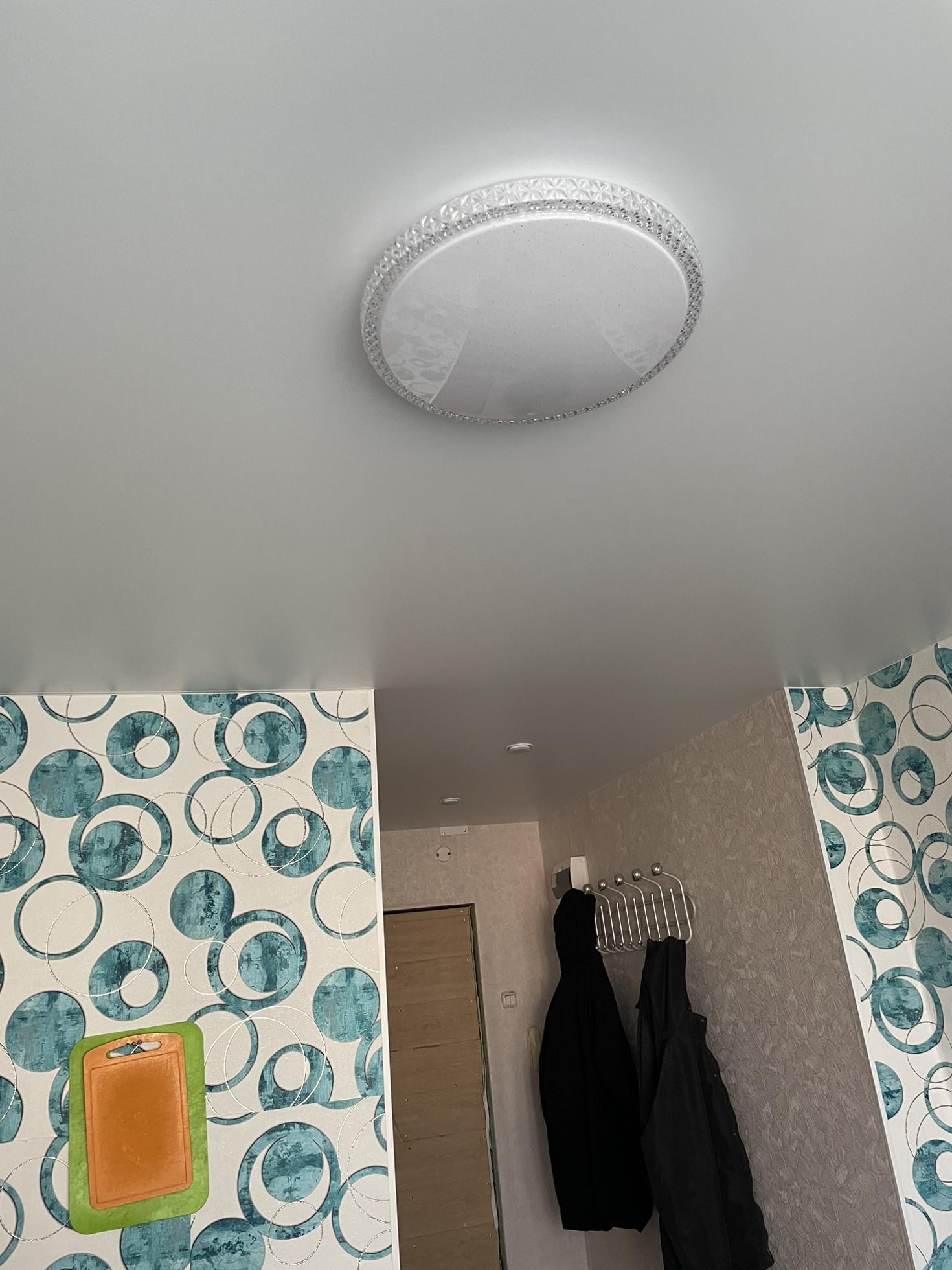 Стены  оклеены обоями, потолки натяжные. Двери современные. На полу линолеум.