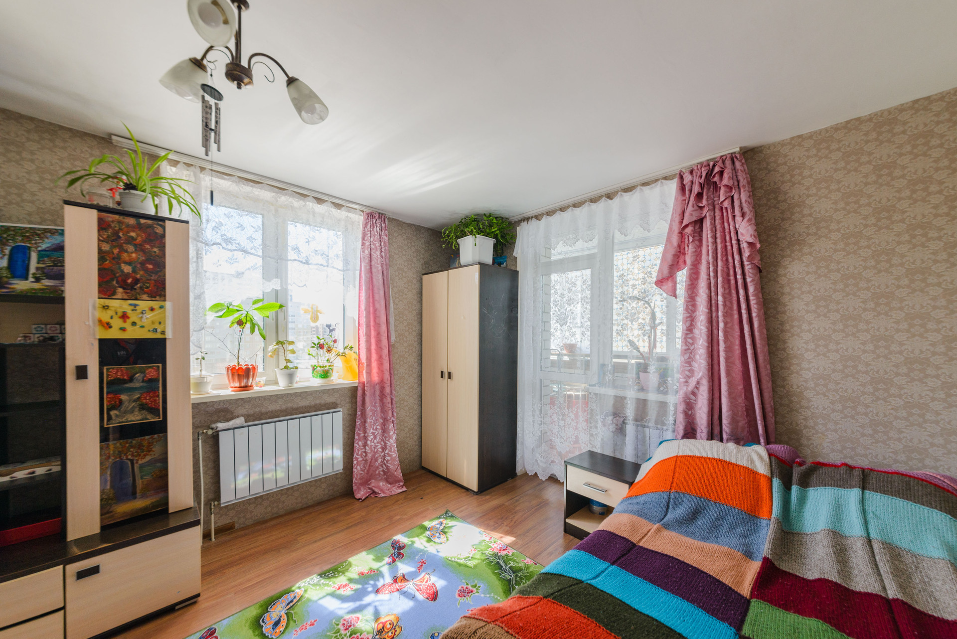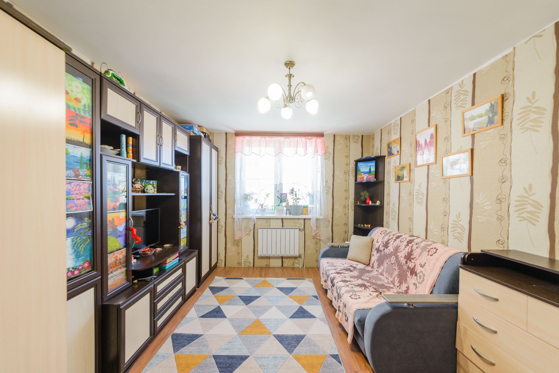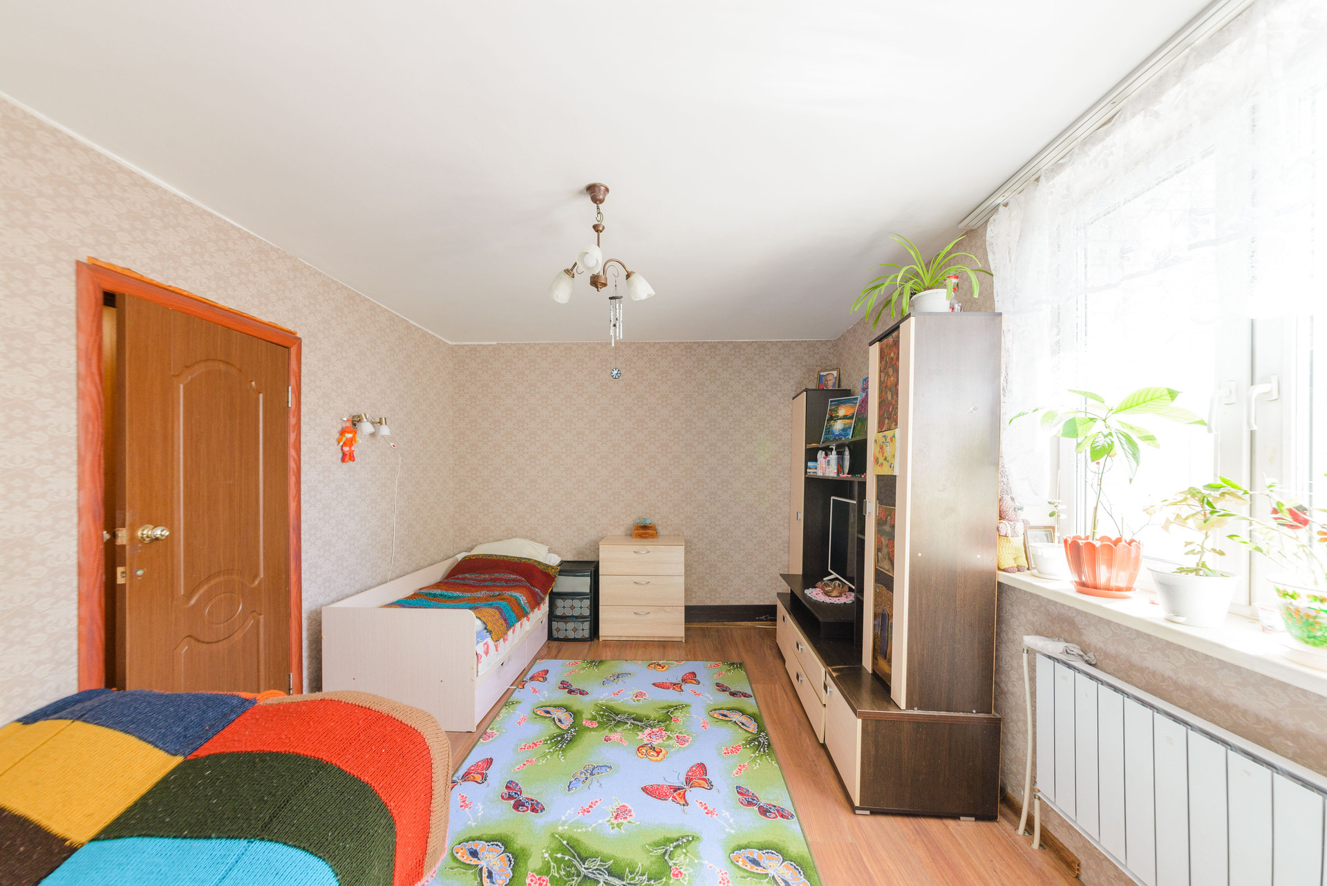 Покупателю в подарок остается кухонный гарнитур с техникой ( холодильник, духовой шкаф, варочная поверхность, вытяжка, стиральная машина), шкаф в коридоре, две стенки, диван.