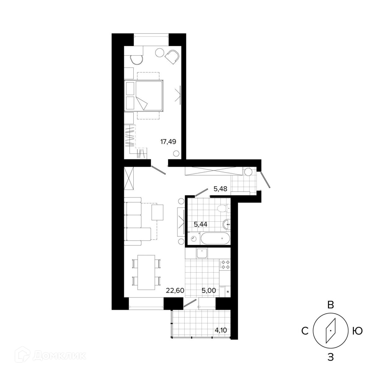 Общая площадь 55.8 м2