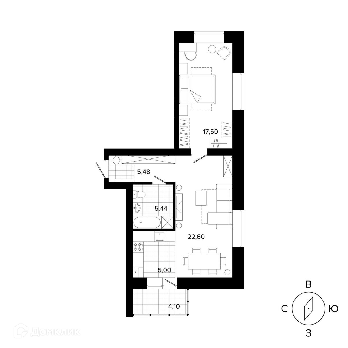 Общая площадь 55.5 м2