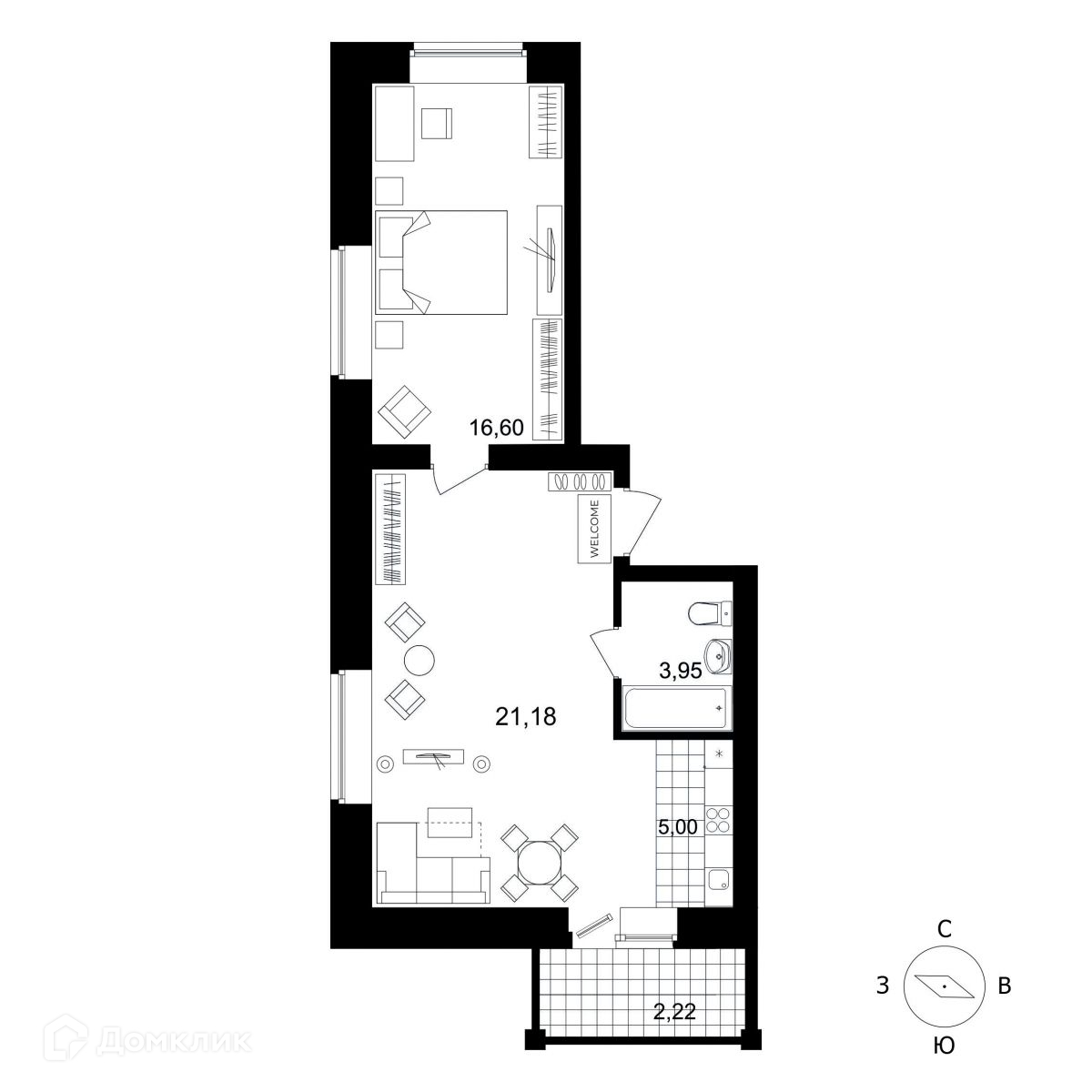 Общая площадь 55 м2