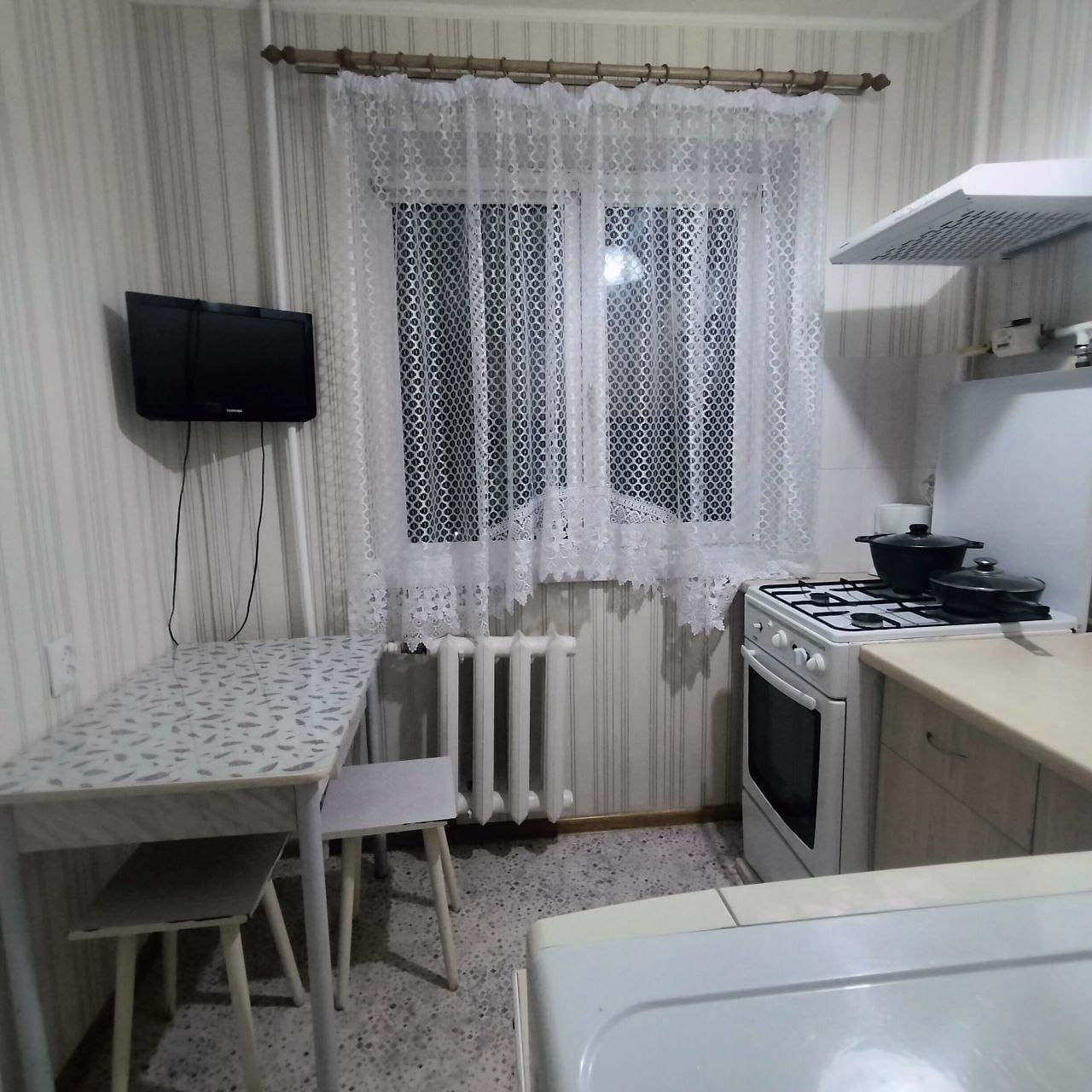 Мебель, техника, которая есть сейчас в квартире (кроме телевизоров) остается.