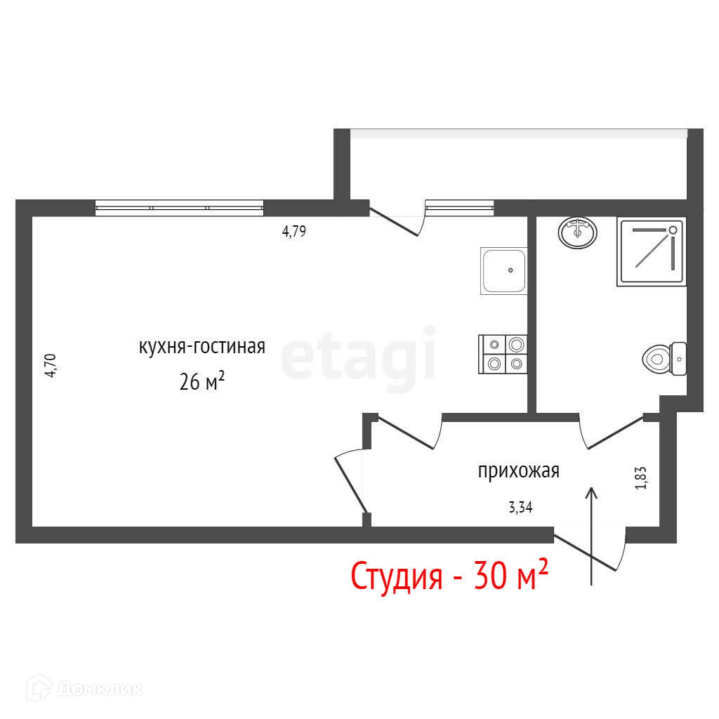 Общая площадь 30 м2