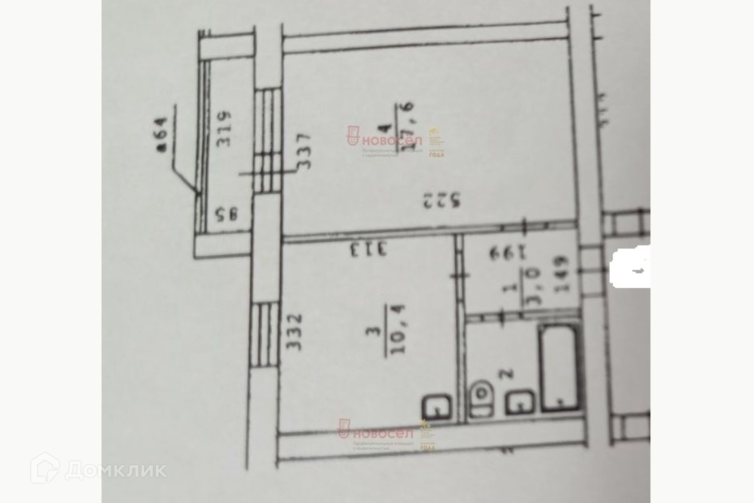Общая площадь 34 м2