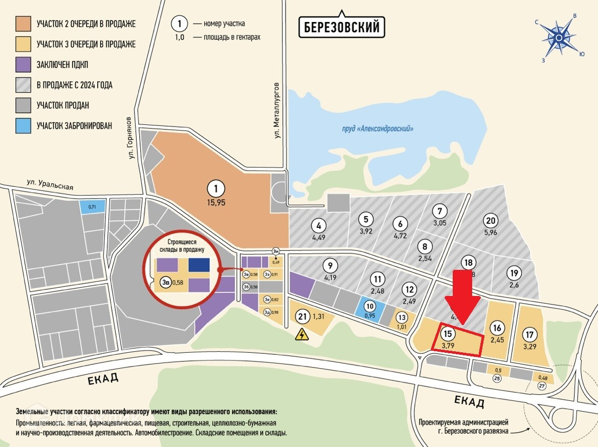 В продаже земельный участок промназначения в городе Березовский Свердловской области под логистику и производство.