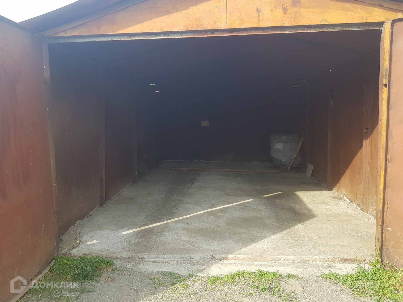Во дворе металлический гараж.