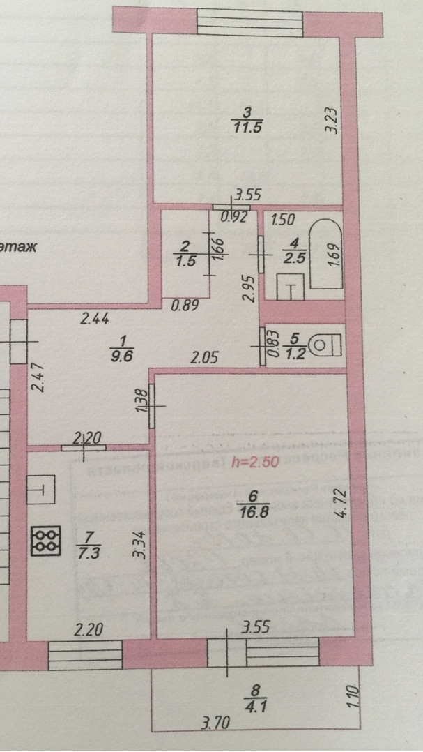Высота потолков 2.5 м