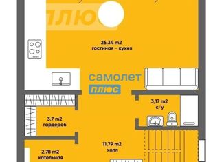 Общая площадь: 28.6 м2