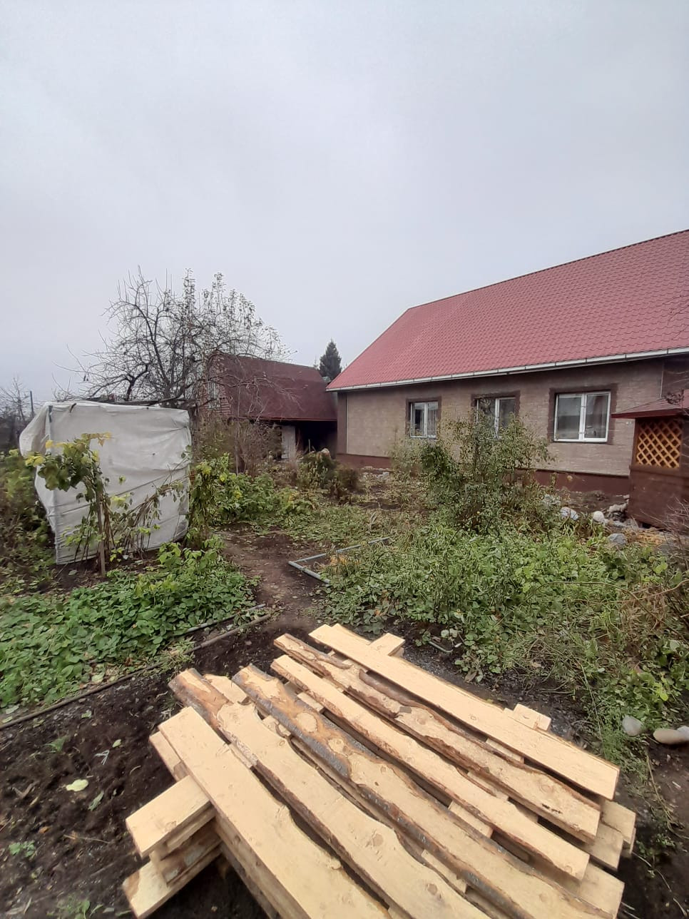 На участке построен большой гараж ,новая баня в два этажа.