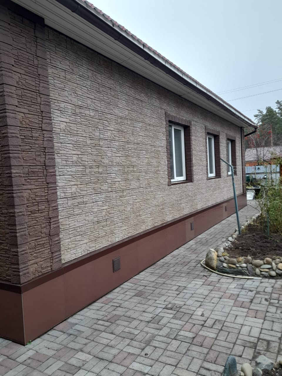 Вся территория во дворе дома уложена плиткой.