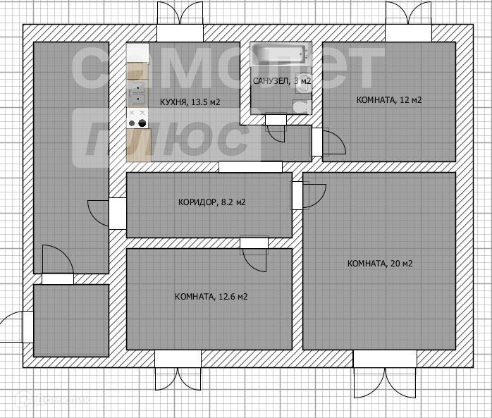 Общая площадь 85.3 м2