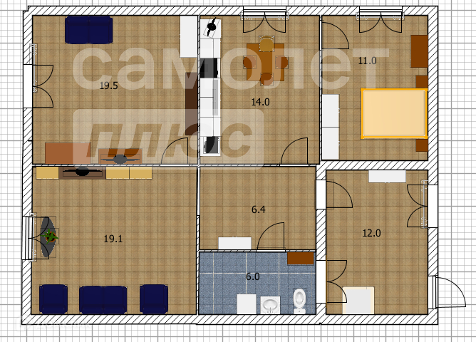 Общая площадь 76 м2