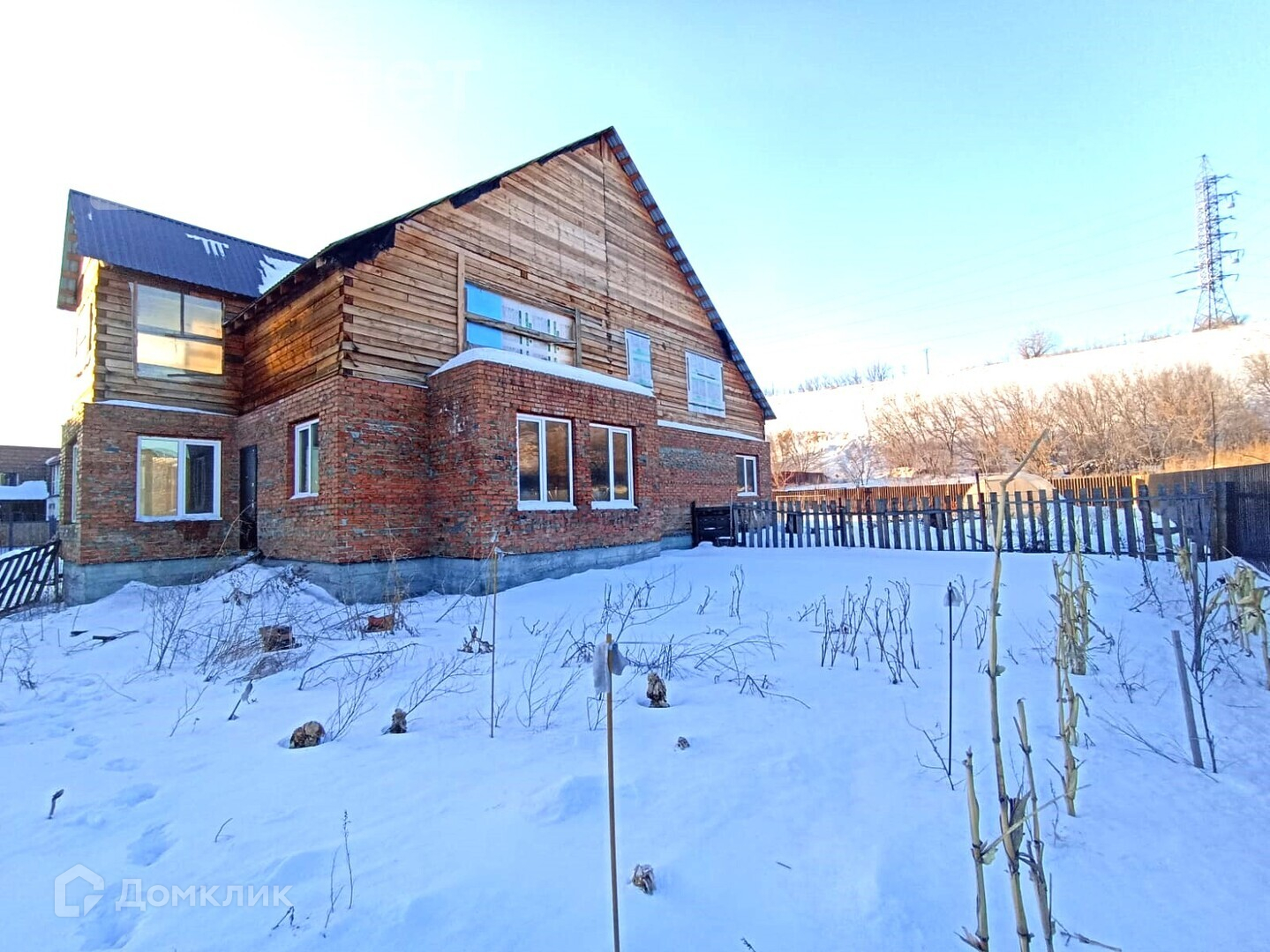 - Первый этаж из кирпича второй из бруса;