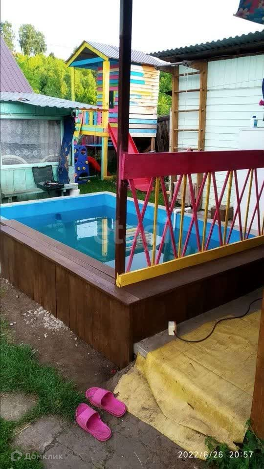 На участке дом, 2 комнаты ( спальня( диван, кресло, шкафы для одежды) , кухня оборудована кухонным гарнитуром), установлена печка длительного горения. Вода проведена в дом ( трубы пластиковые) . Забор вокруг участка деревянный высокий с калиткой. На веранде отдельное помещение для туалета и душа, установлен унитаз, вода подведена). На территории бани установлена терраса тандыр, диван, кухонный гарнитур, раковина( вода подведена,трубы пластиковые). Установлено помещение для рабочего инвентаря( лопаты, грабли, банки и т. д.). На территории капитальный бассейн объём 10 м3 ( в комплекте насос для выкачивания, очистки и закачивания воды) , баня с отдельной парилкой, помещение для мытья, помещение- раздевалка, вода горячая и холодная подведена ( трубы пластиковые) , детская площадка( домик 2 этажа, горка, лестницы для скалолазания, качели 2 вида). На огороде установлена теплица, деревья ( груша, вишня, смородина, слива синяя, виноград сорт Амурский