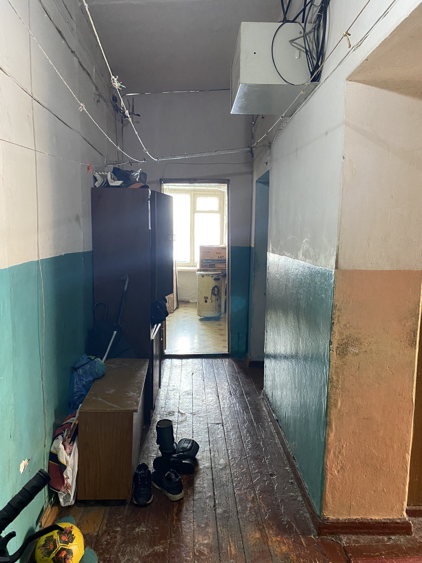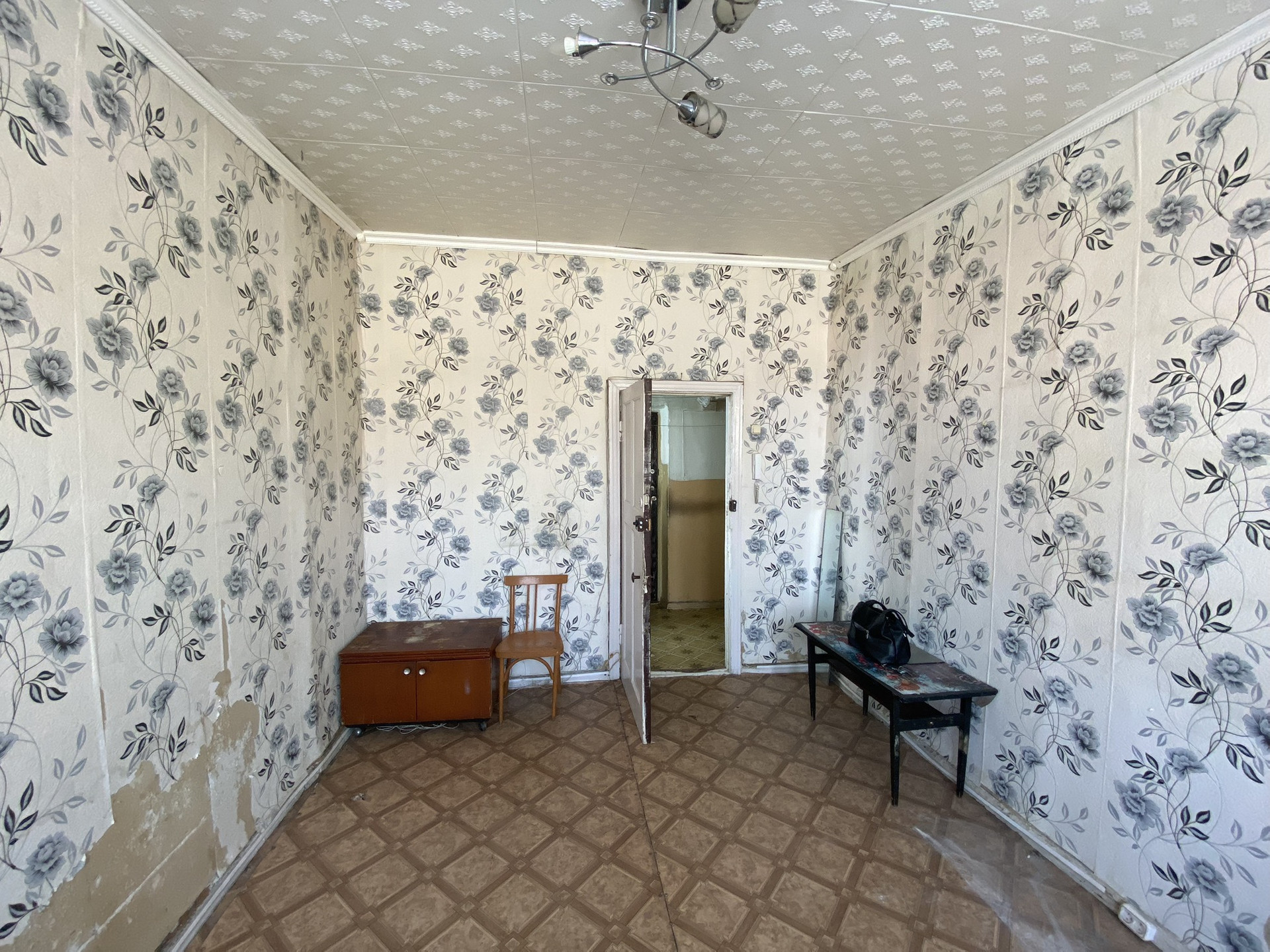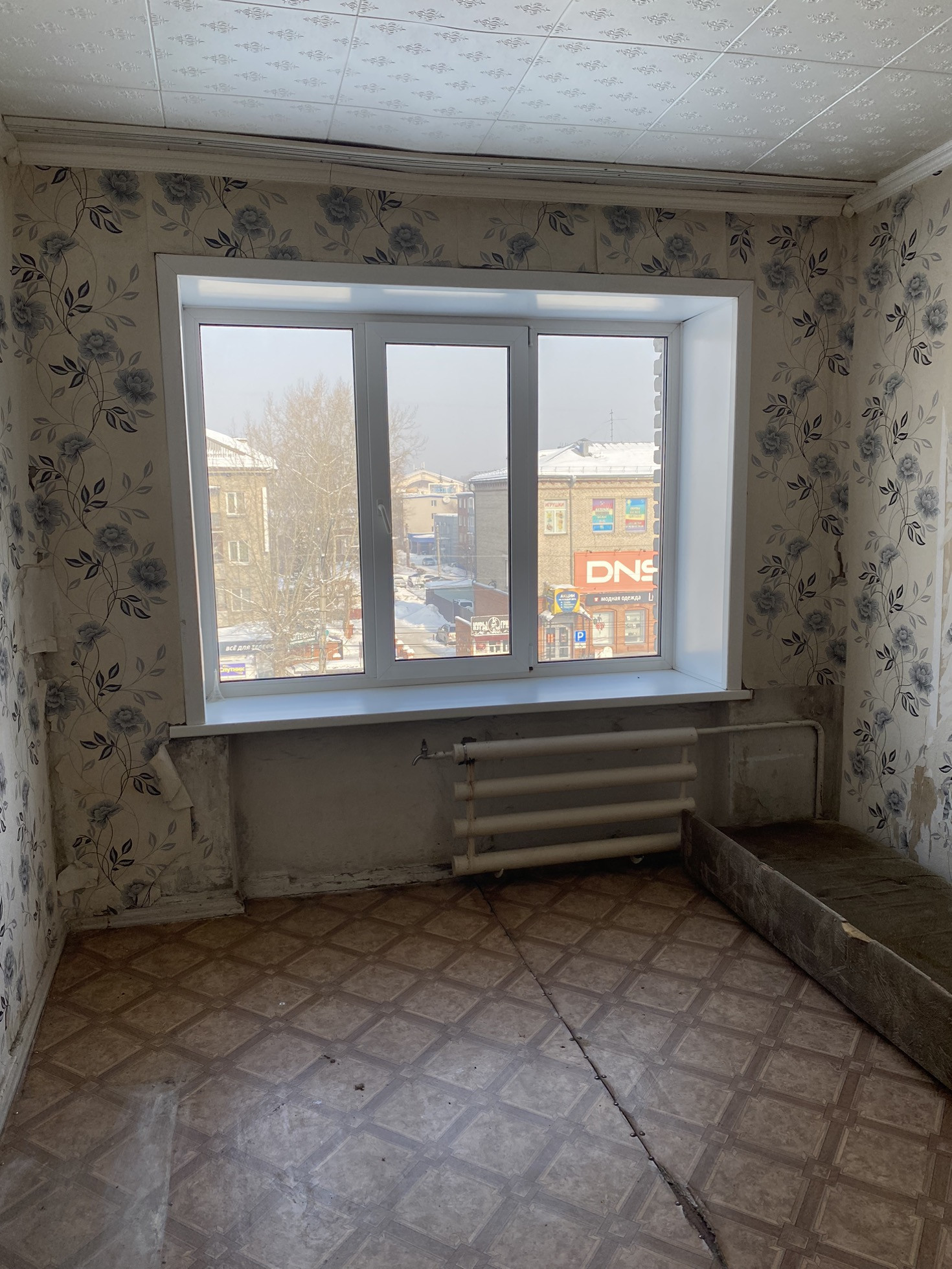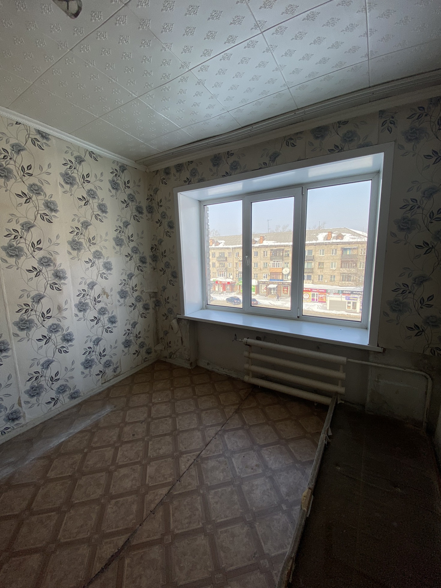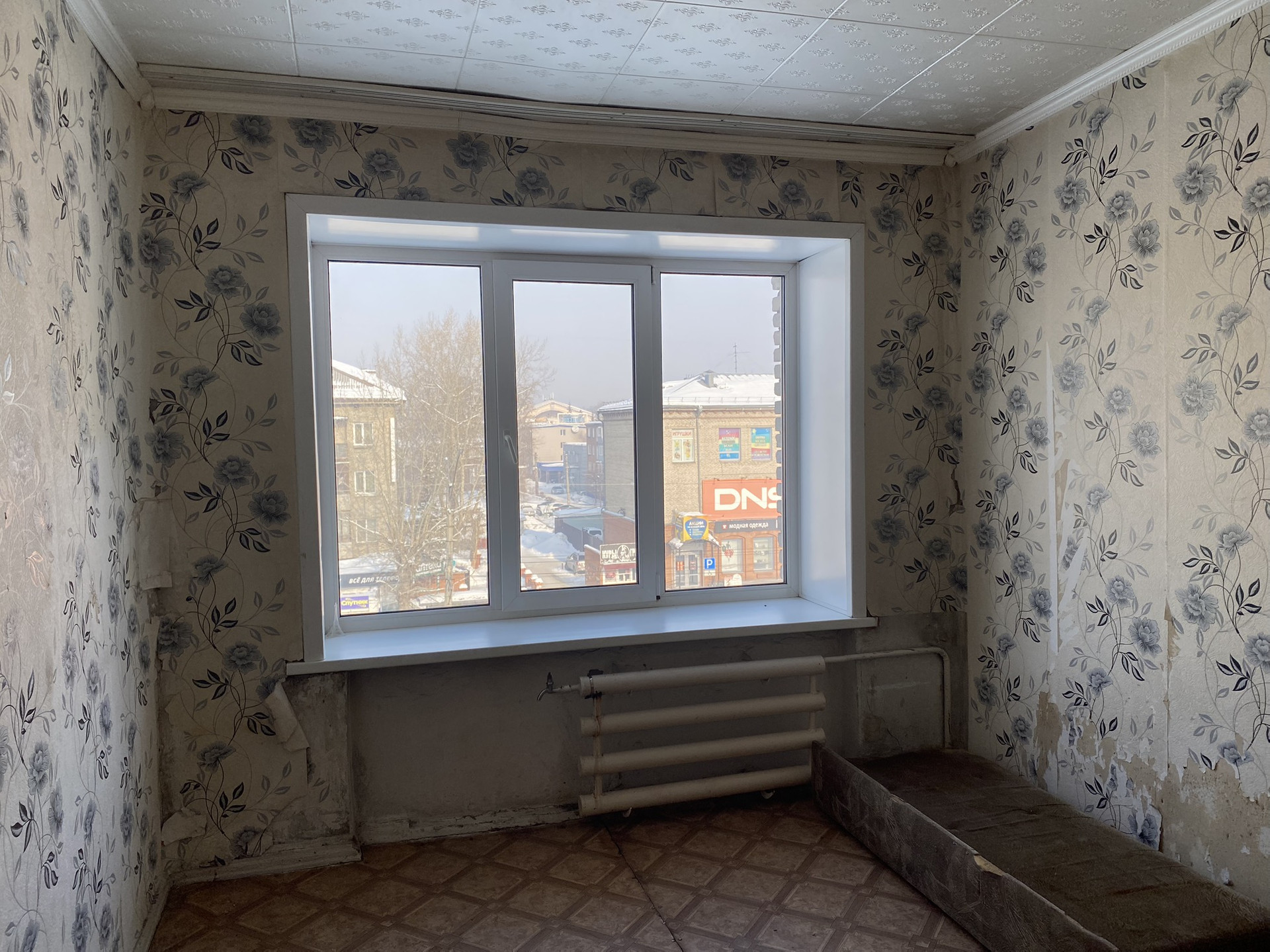 Комната светлая, тёплая, пластиковое окно, потолочная плитка, линолеум, нужен косметический ремонт.