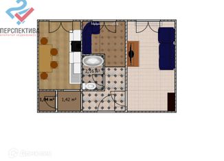 Общая площадь: 17.4 м2