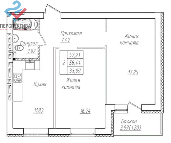 Общая площадь 61.2 м2
