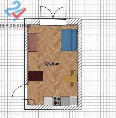 Жилая площадь 17.5 м2