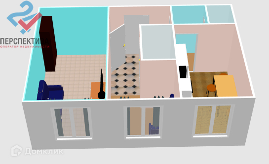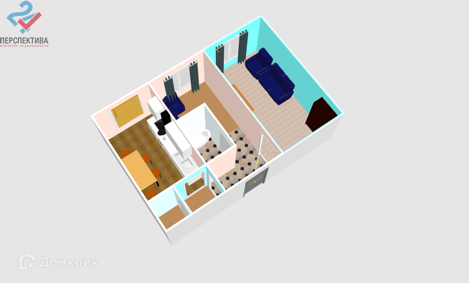 Общая площадь 43.6 м2