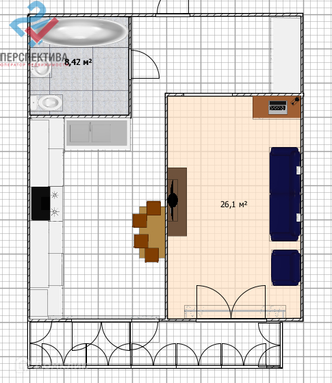 Площадь кухни 11.9 м2