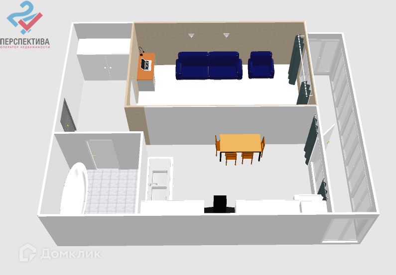 Общая площадь 45.7 м2