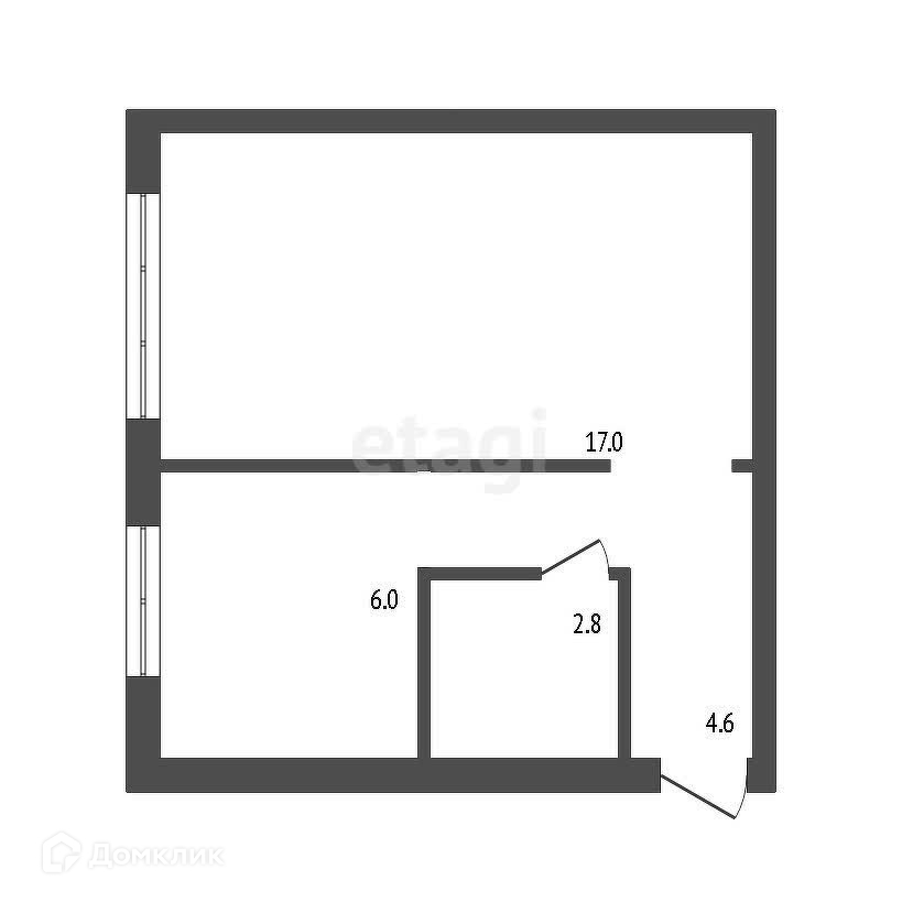 Общая площадь 30.8 м2